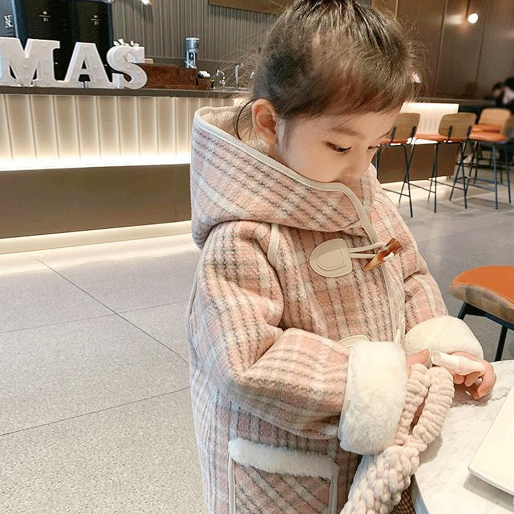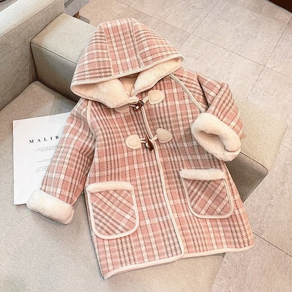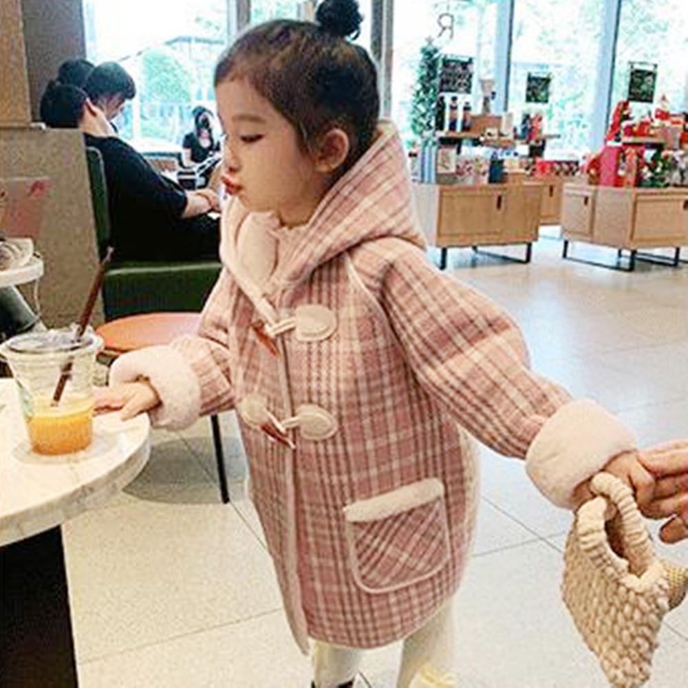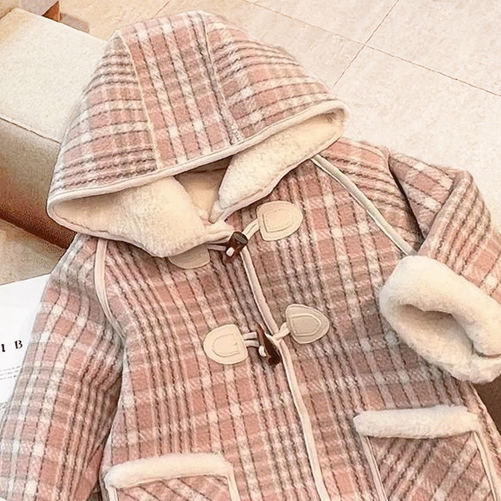 粉嫩格紋 經典牛角扣