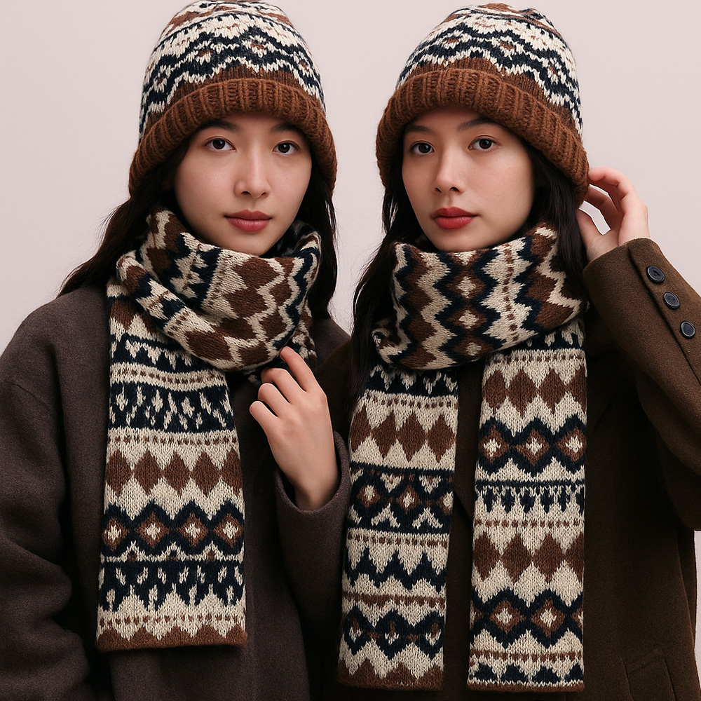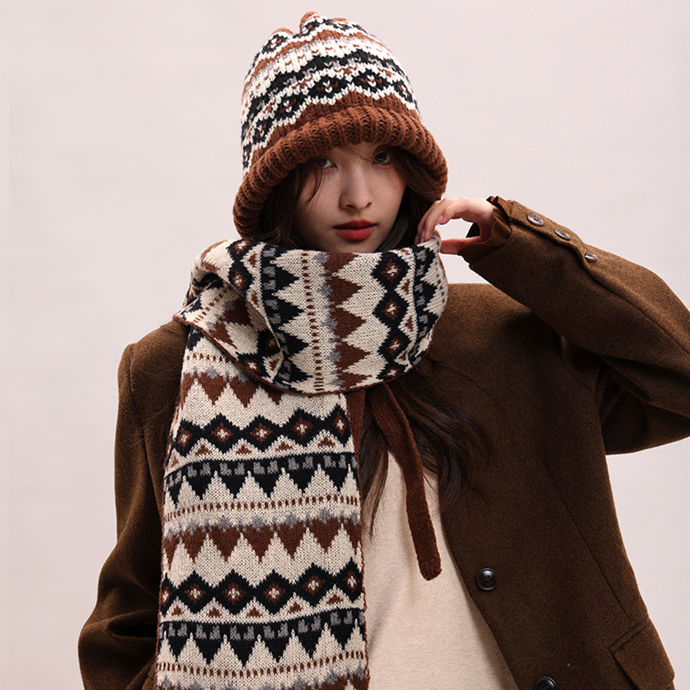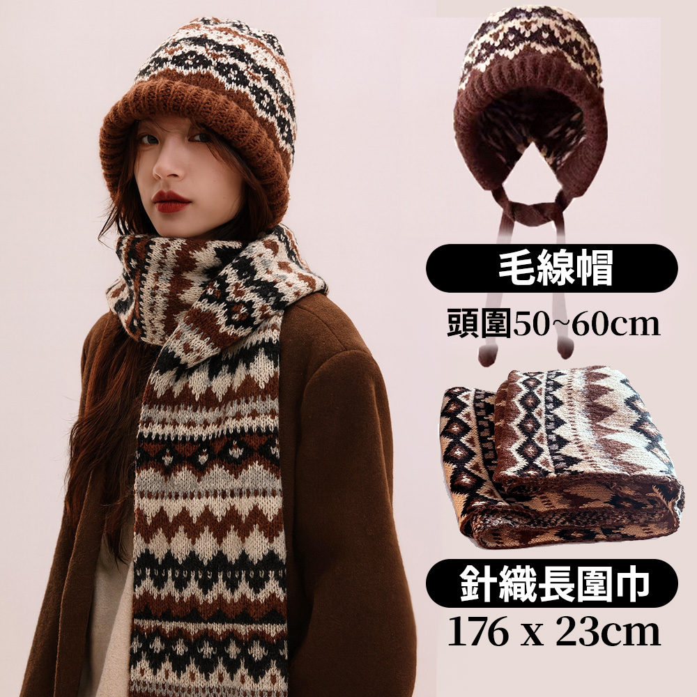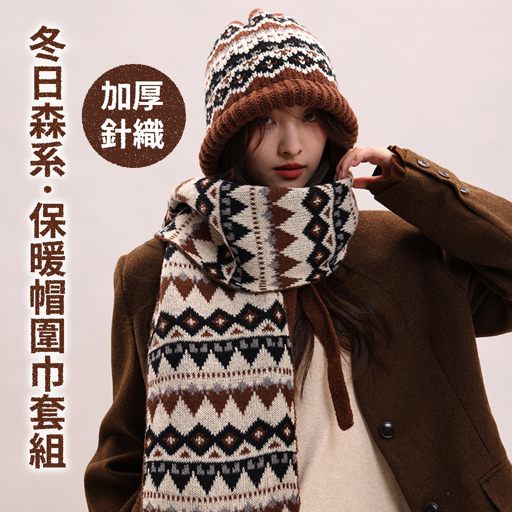 【野思】冬日森系·溫暖相隨帽圍巾套組(針織毛線帽+長圍巾)