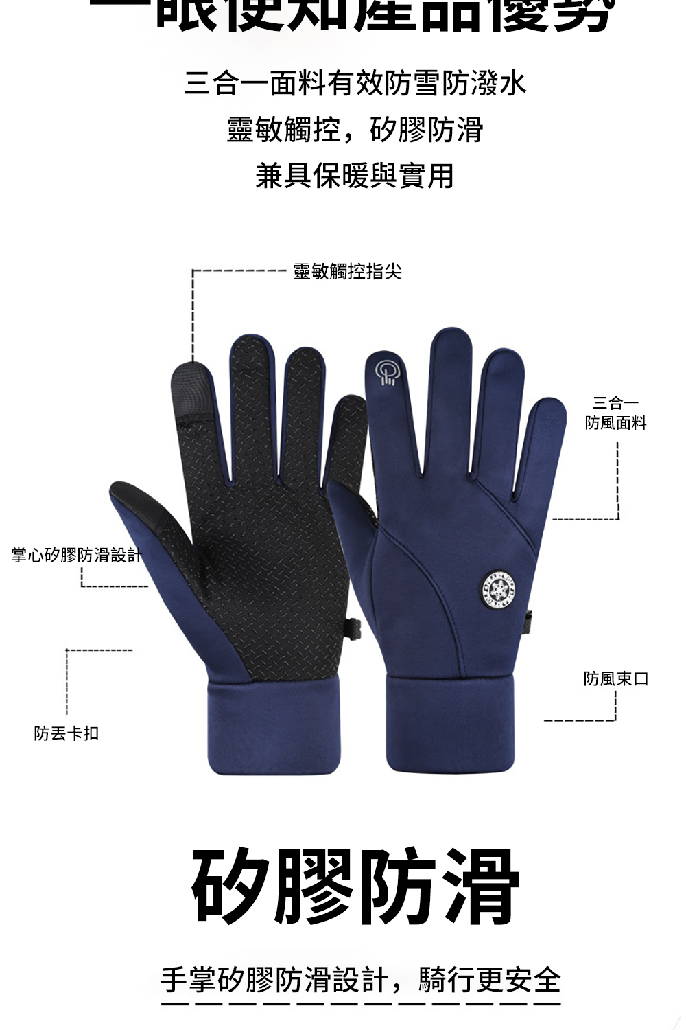 【Warmi】可觸控加厚加絨防滑保暖手套 防風防水防寒手套 冬季戶外登山滑雪手套 騎行健行機車手套 交換禮物