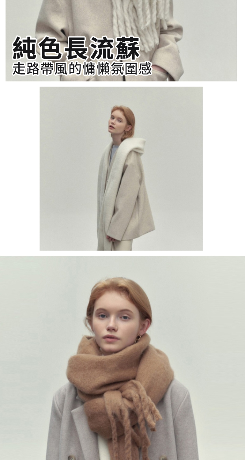 【GAPE】純色百搭長款保暖圍巾 軟糯慵懶風保暖圍脖 防寒防風披肩圍巾 復古流蘇披肩 禦寒鎖溫 情侶款圍巾