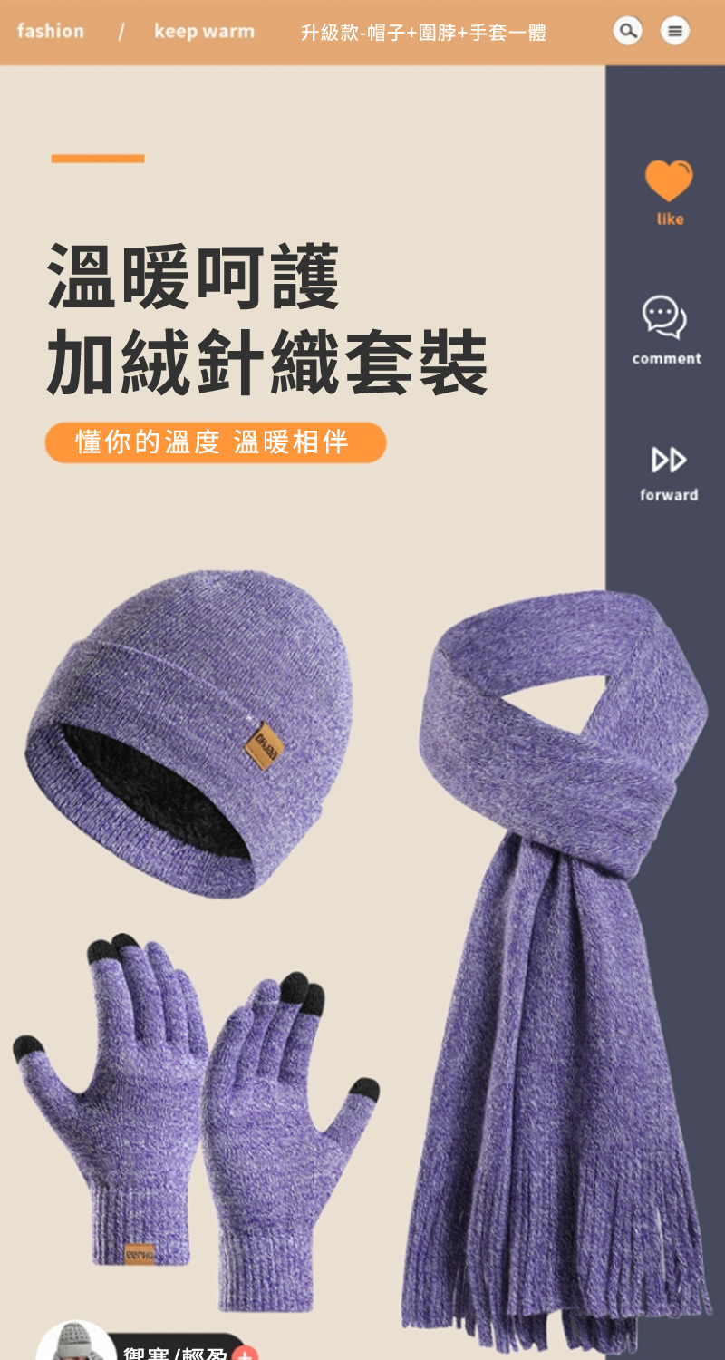 【GAPE】秋冬男女保暖毛線三件套 加厚加絨針織帽圍巾手套 針織圍脖 毛線帽 保暖手套 戶外防寒防風 冷帽