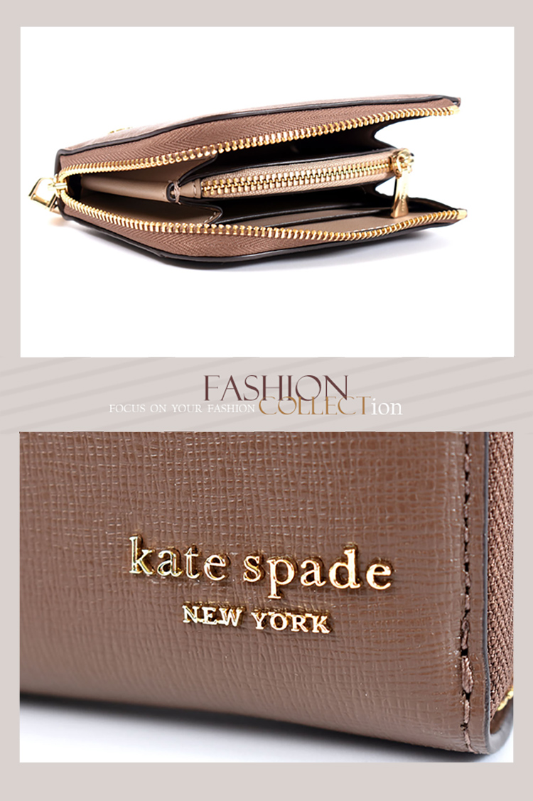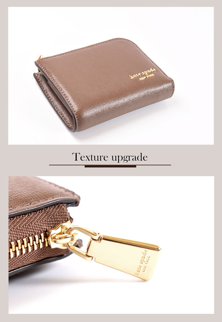 【KATE SPADE】專櫃款 防刮L型拉鍊卡包/零錢包-深可可