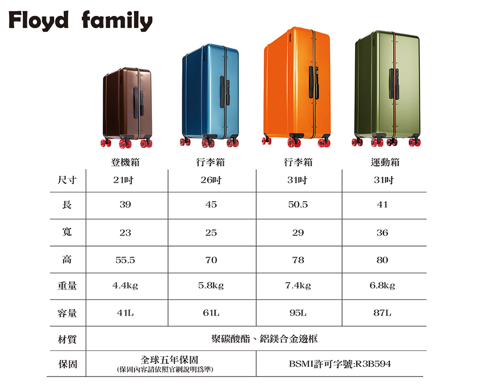 台灣五年保修(付費),範圍內容請詳細閱讀行李箱內附之維修說明卡資訊。