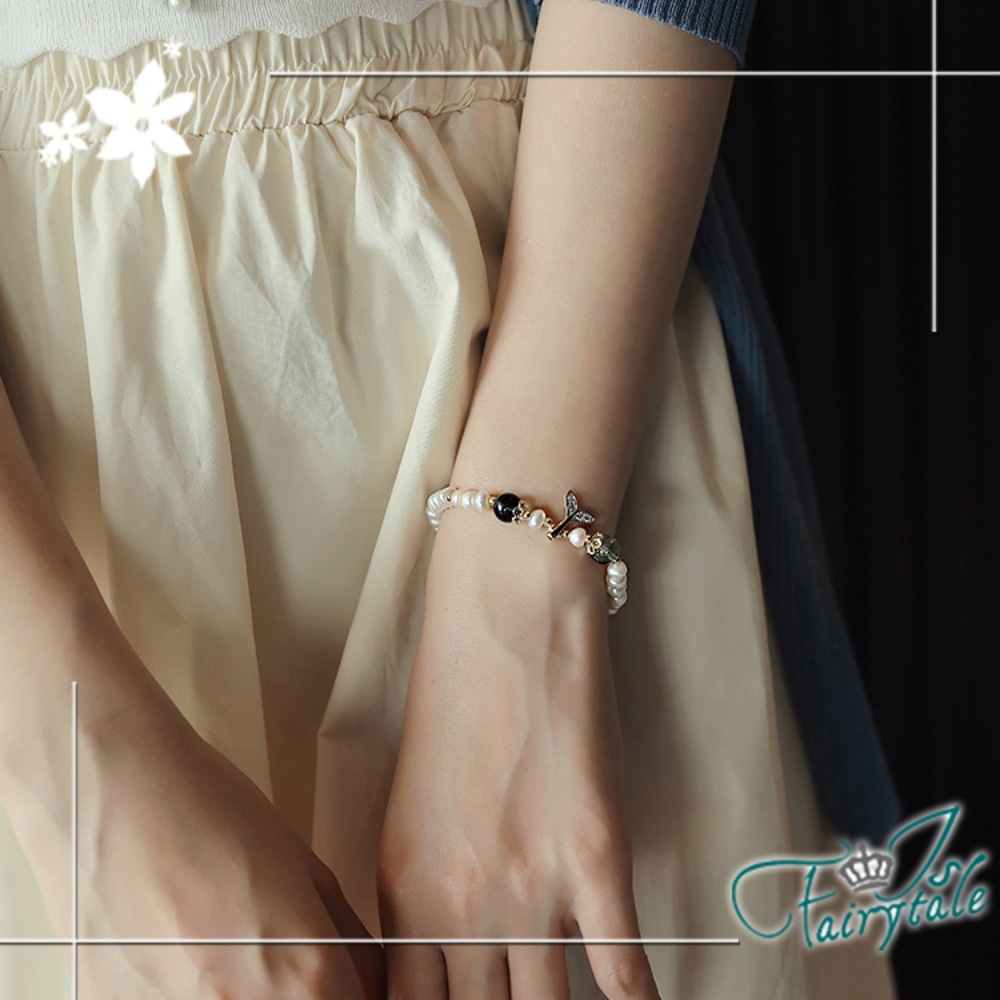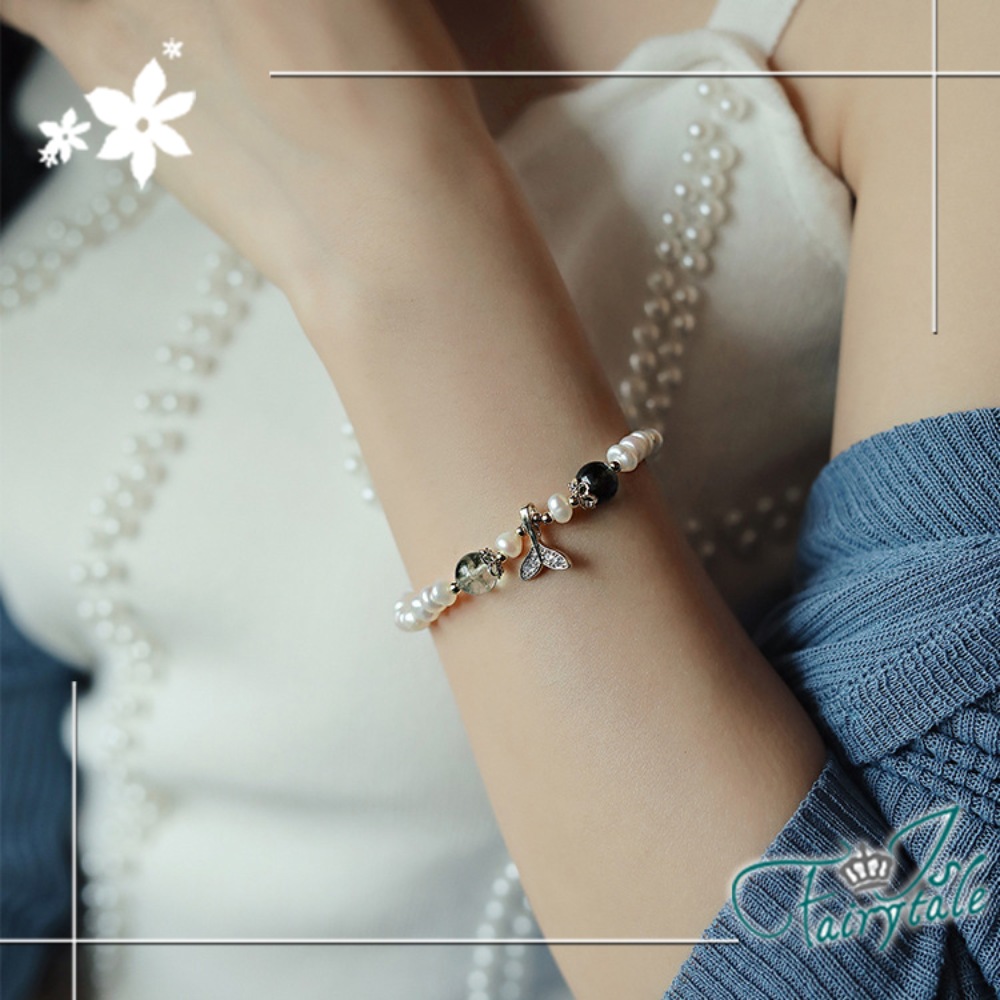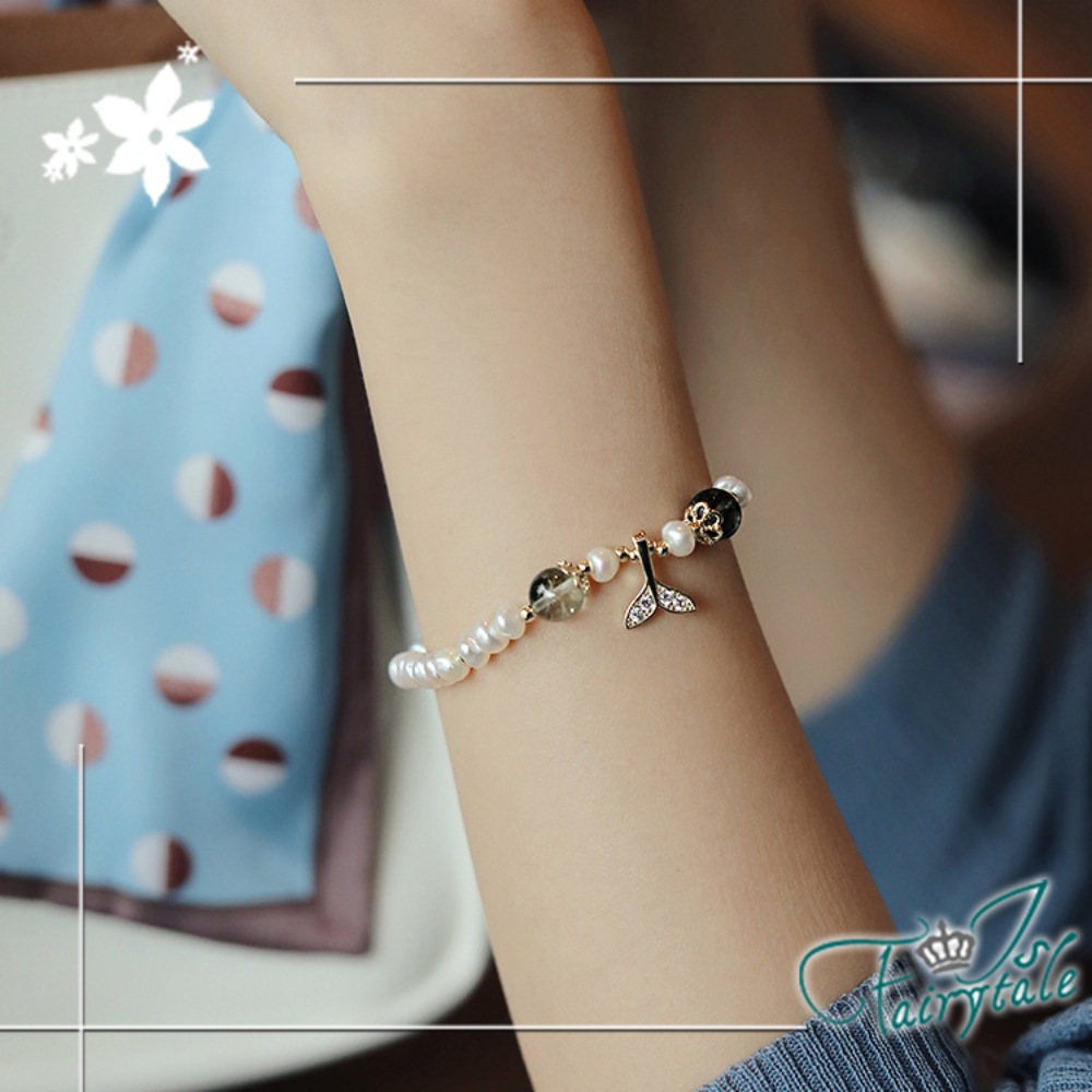 華麗珍珠串不規則造型設計,水鑽人魚甜美時尚,
