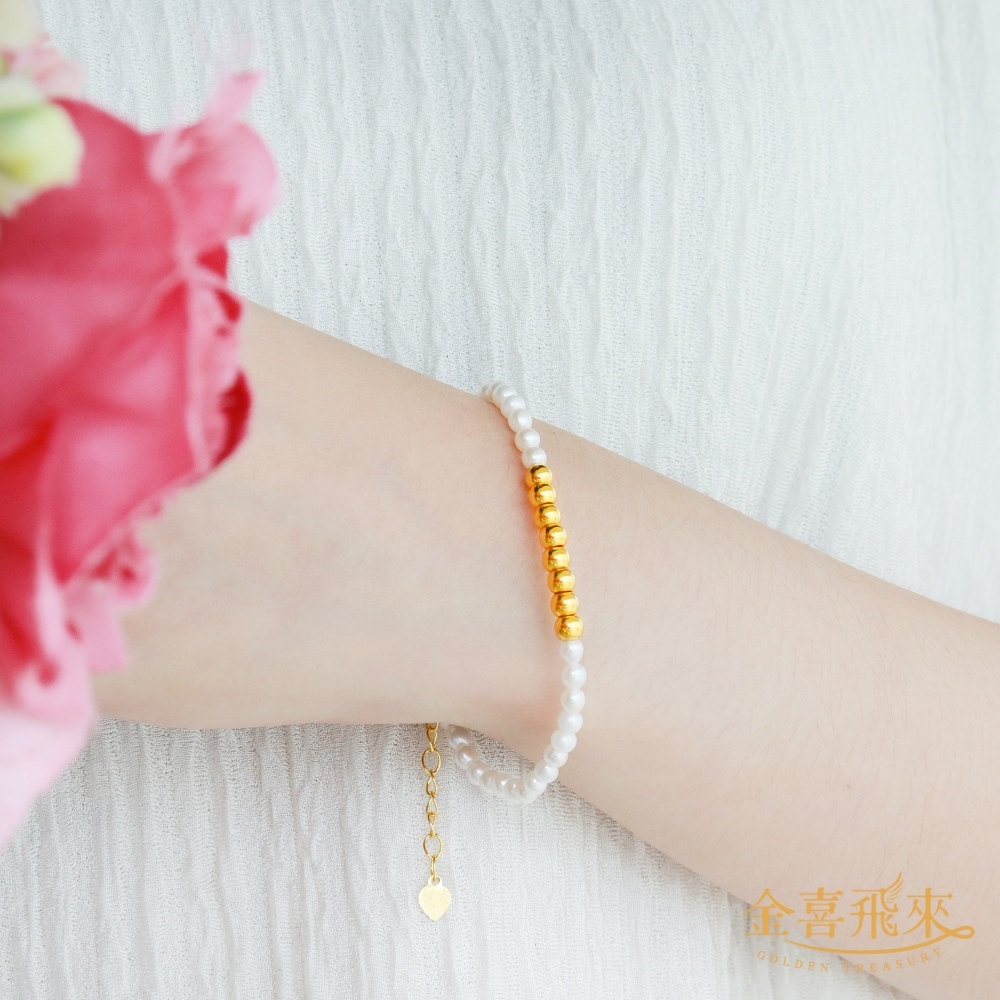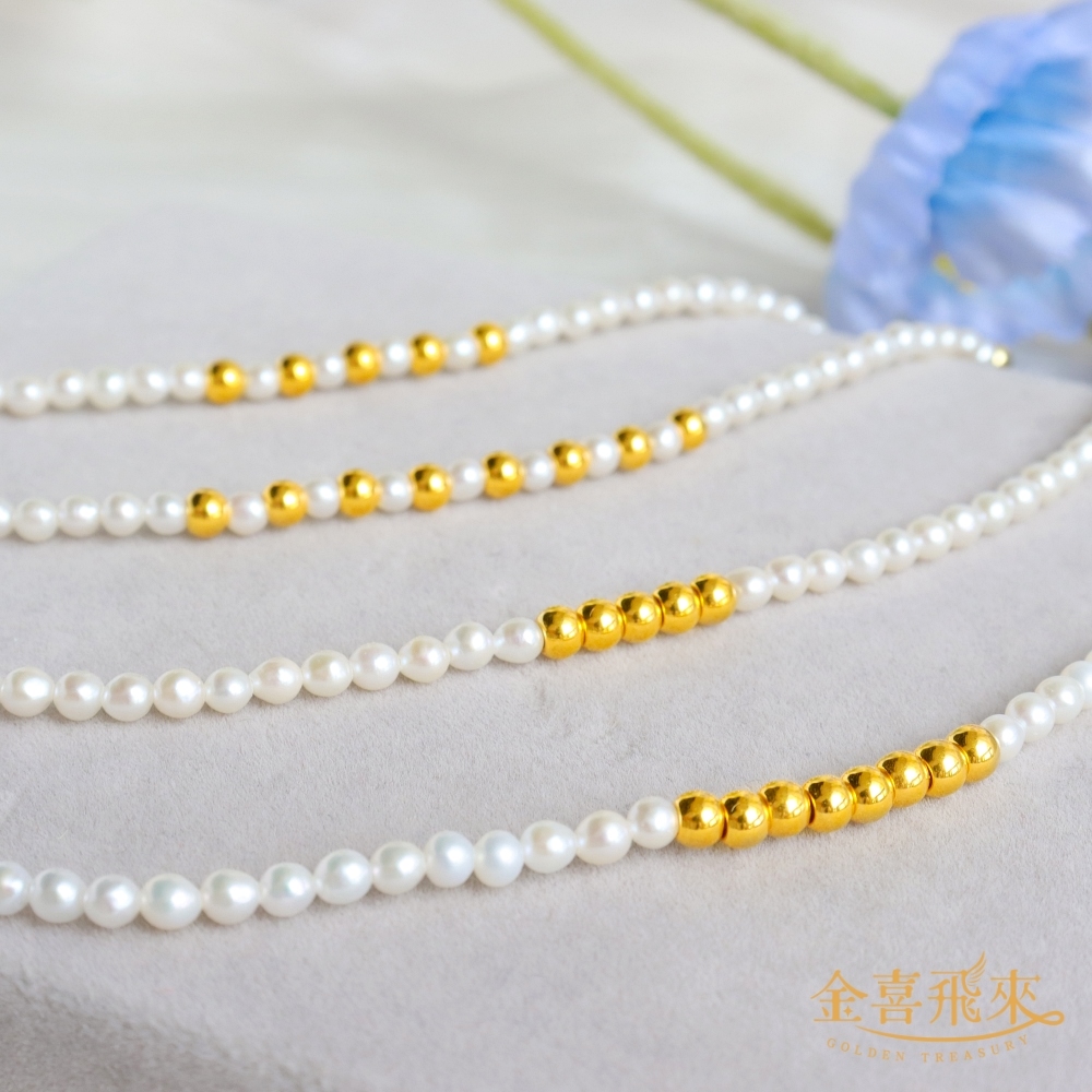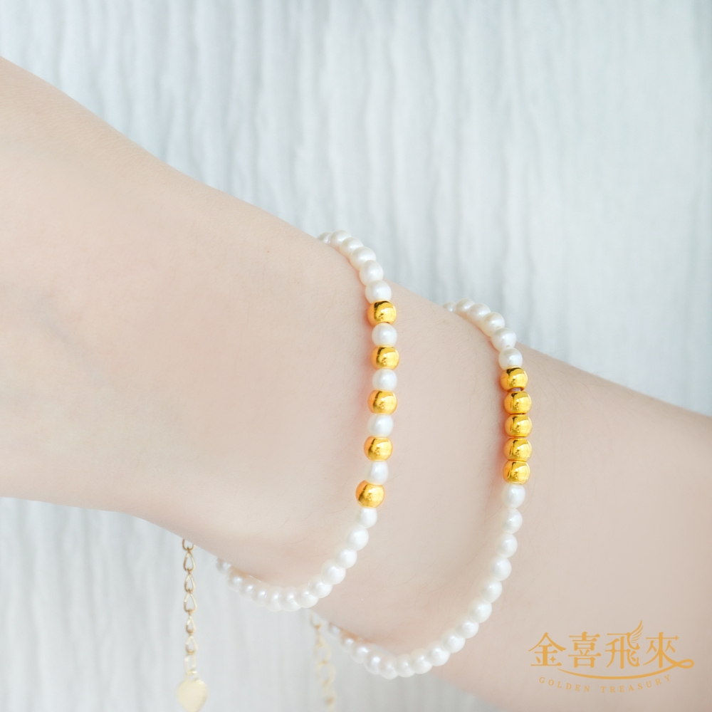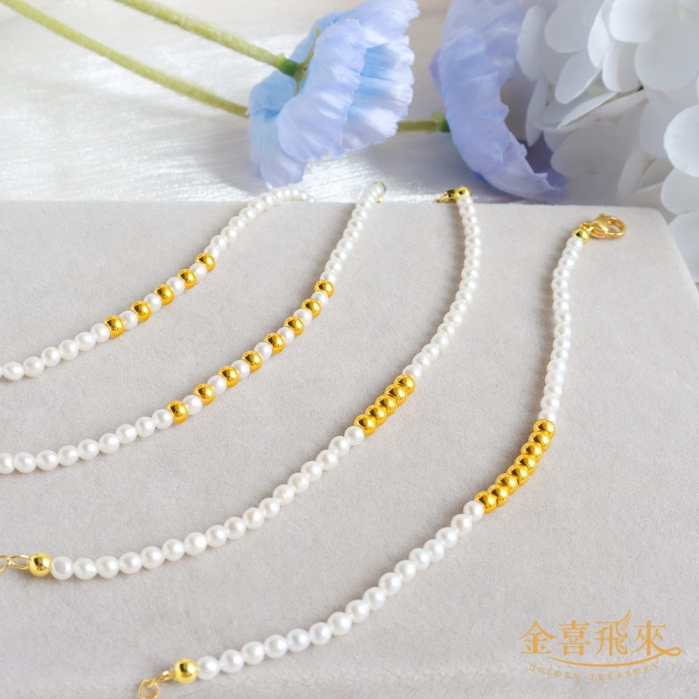 【金喜飛來】黃金手鍊金珠細美珍珠串4mm多選(0.12錢±0.02)