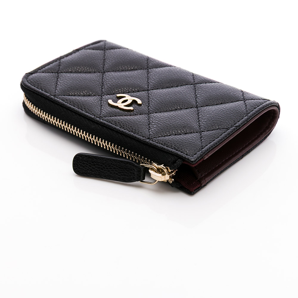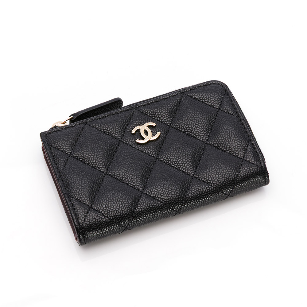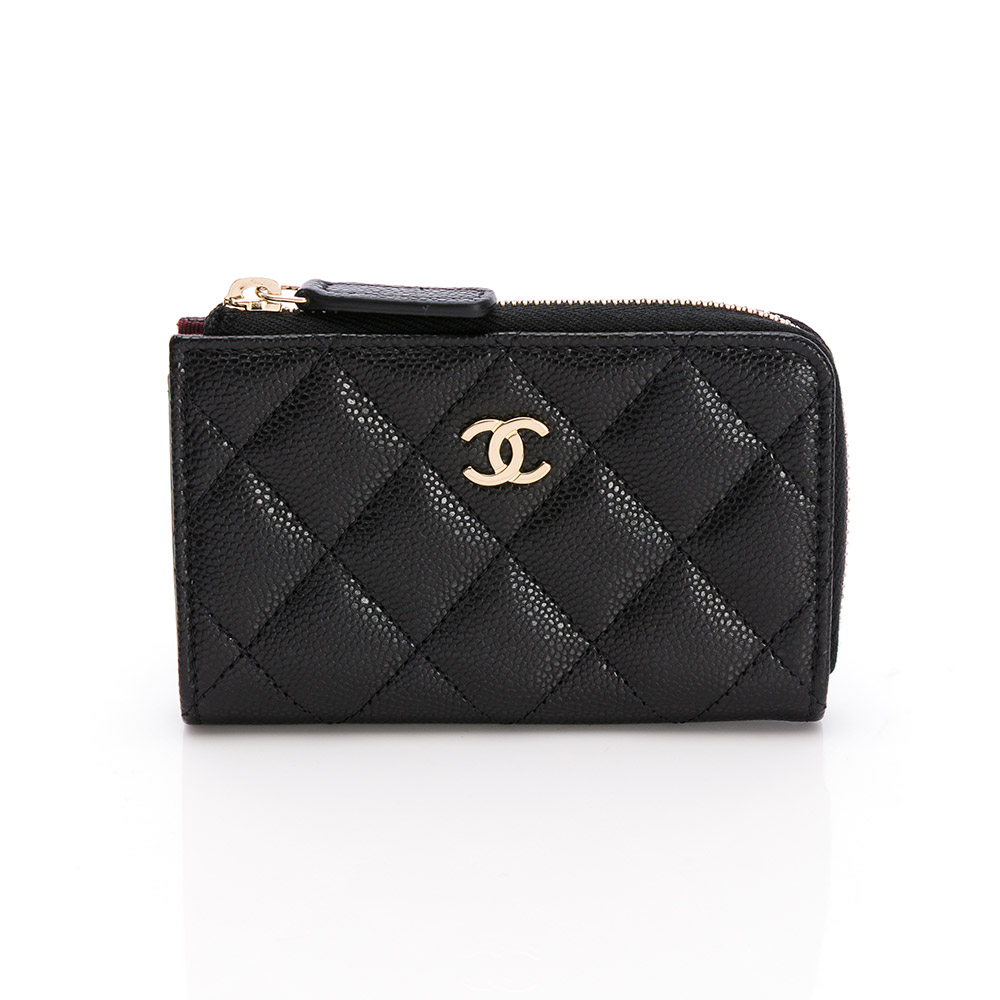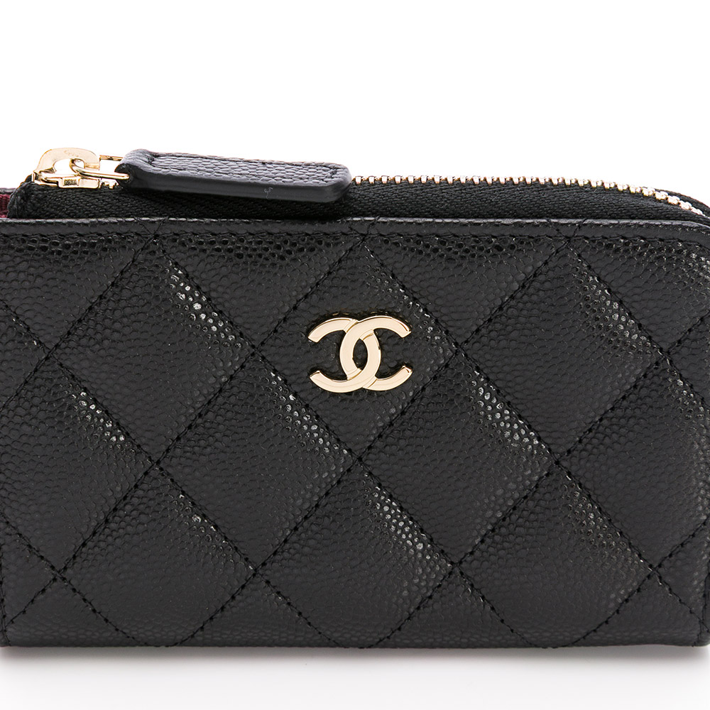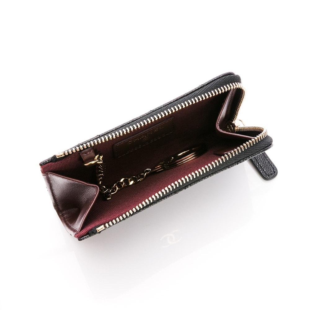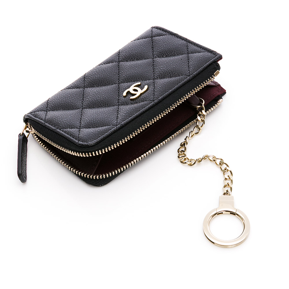25B 經典拉鍊鑰匙零錢包(黑/金)(L字拉鍊)