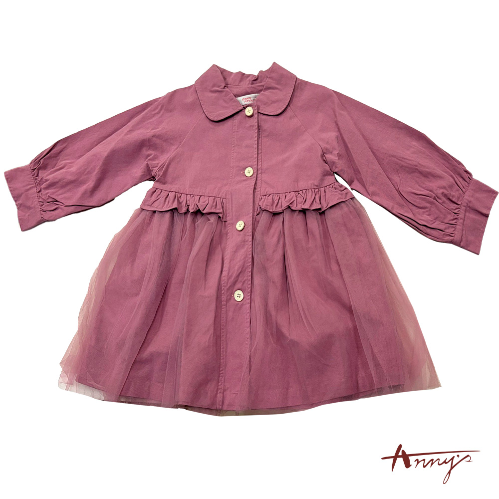 【ANNY’S 安妮公主】童裝 純棉荷葉邊拼接蕾絲秋冬款風衣外套(3297紫色)