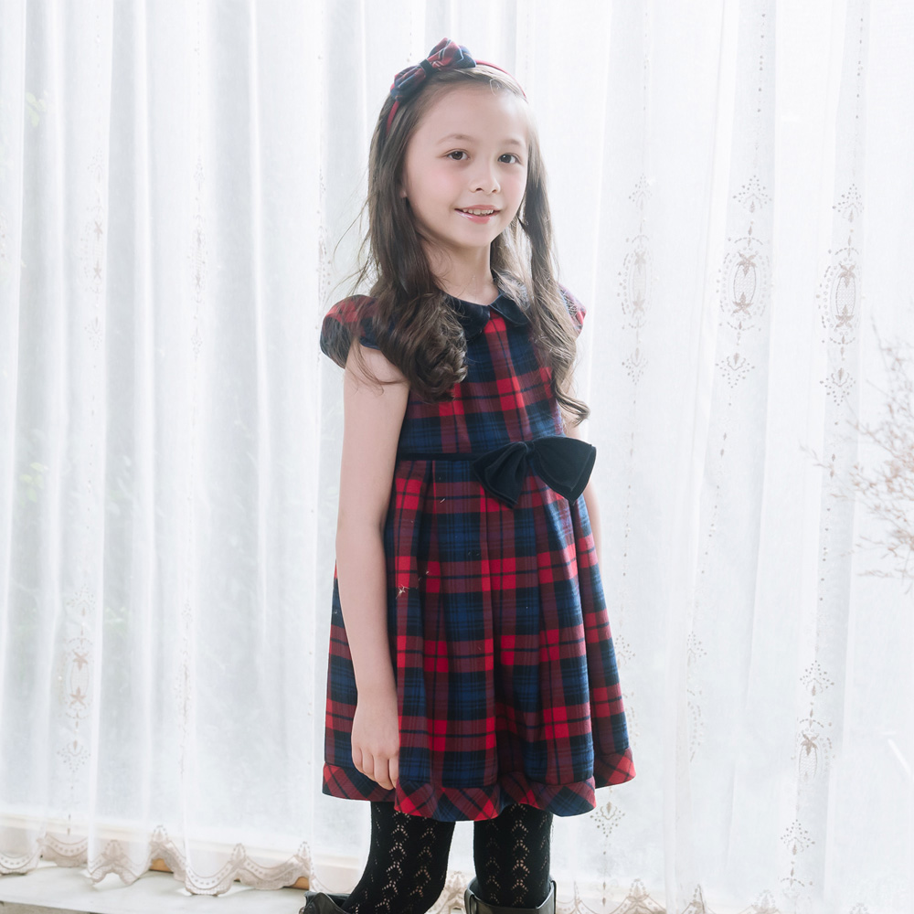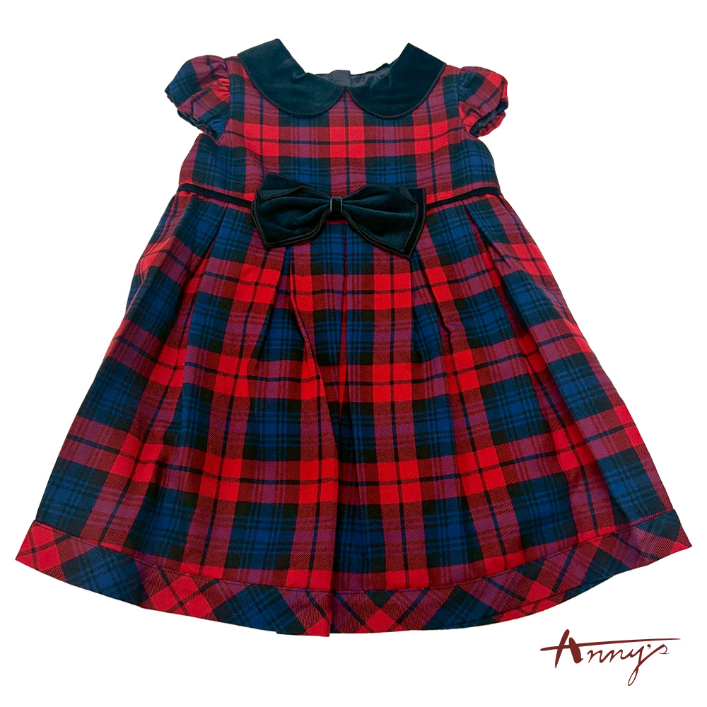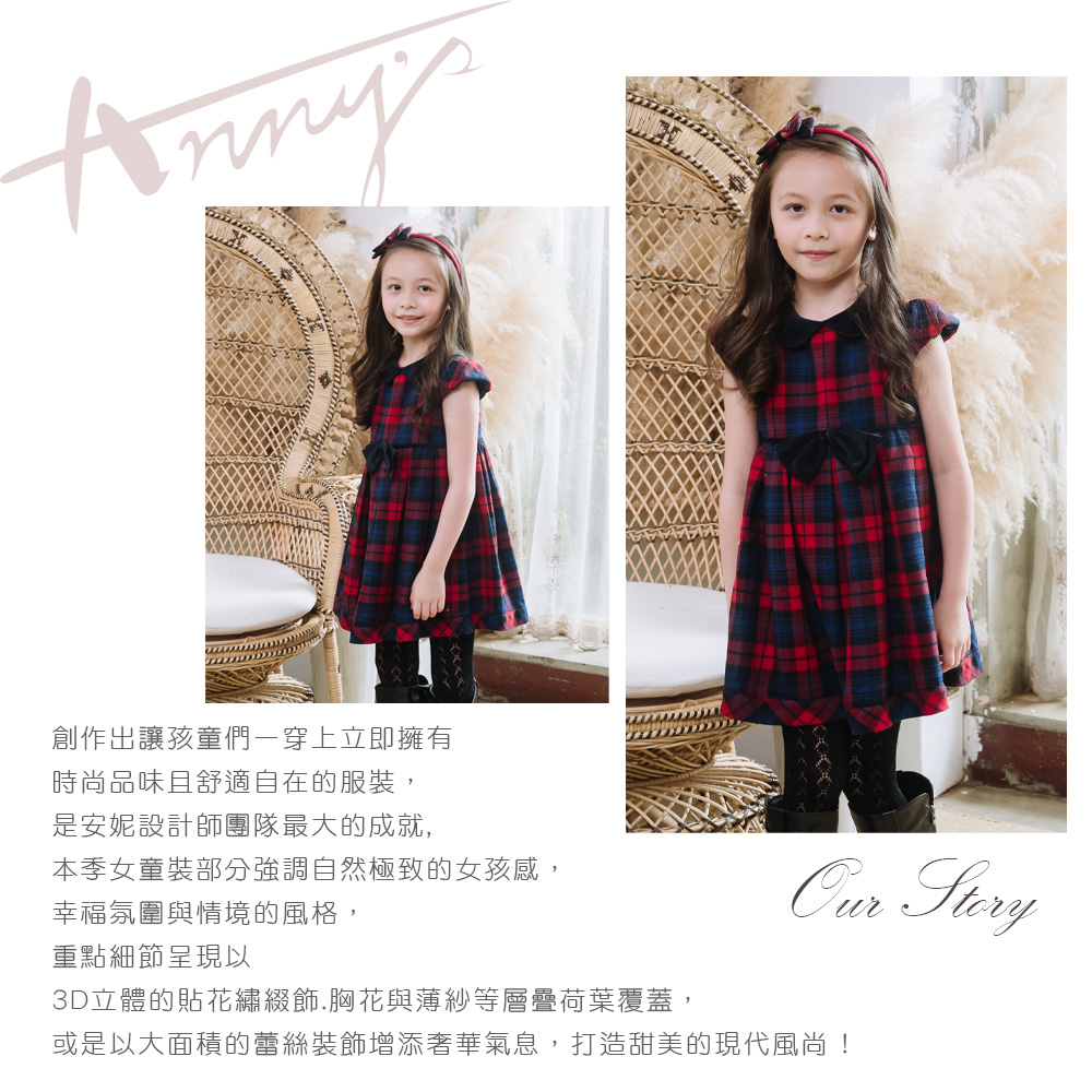 【ANNY’S 安妮公主】童裝 氣質歐式格紋小圓領蝴蝶結秋冬款公主袖洋裝(3258藍色)