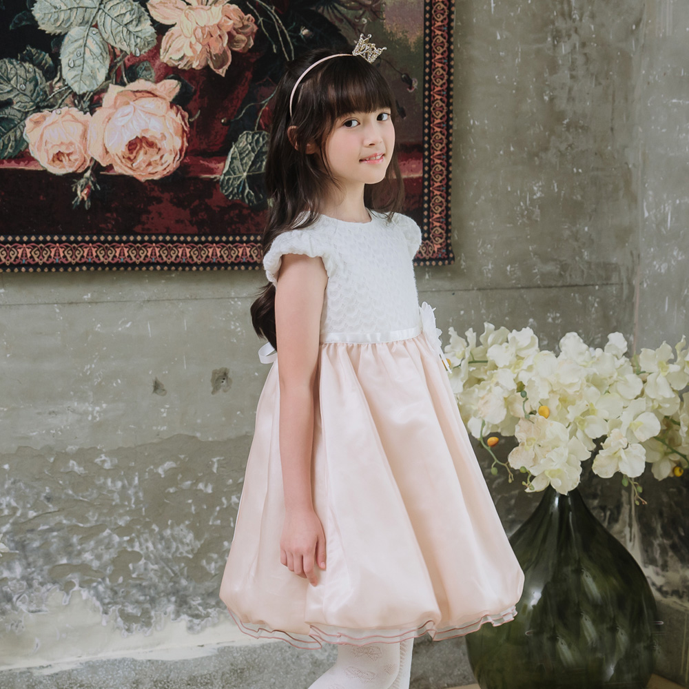 【ANNY’S 安妮公主】童裝 高雅香檳金網紗拼接秋冬款公主袖禮服(3215卡其)