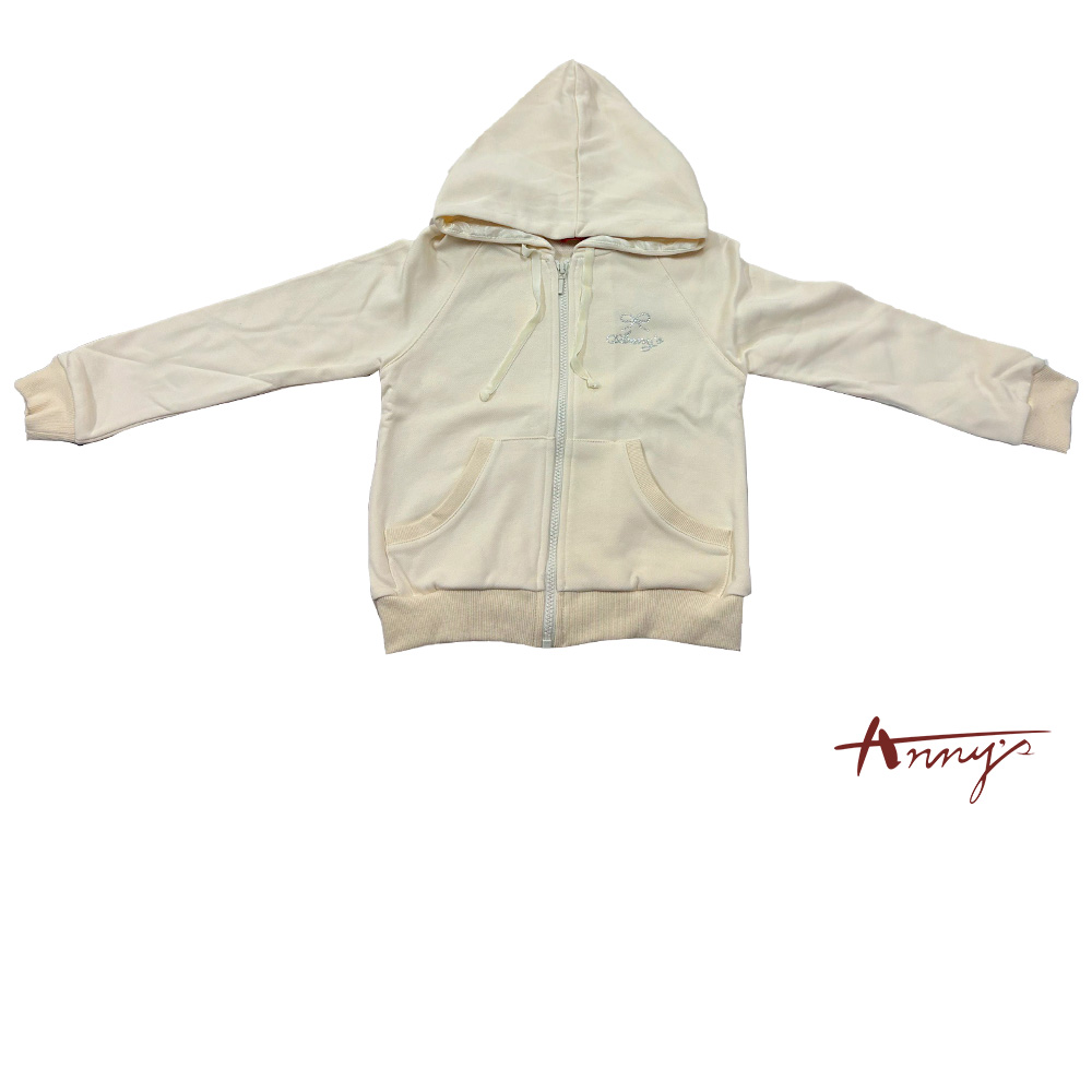 【ANNY’S 安妮公主】童裝 燙鑽LOGO設計秋冬款緞面連帽拉鍊外套(3472米白)