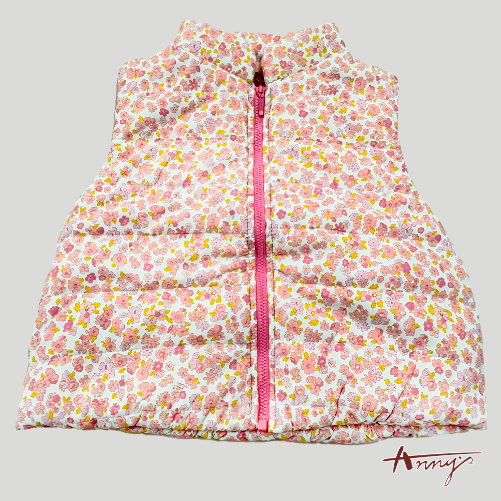 【ANNY’S 安妮公主】童裝 柔色滿版印花秋冬款搖粒絨拉鍊鋪棉背心(3476粉紅)