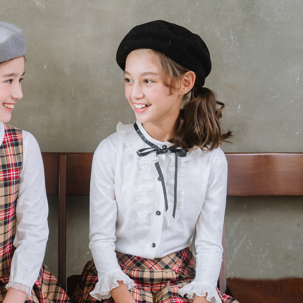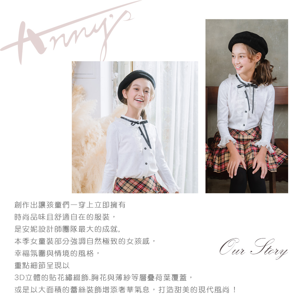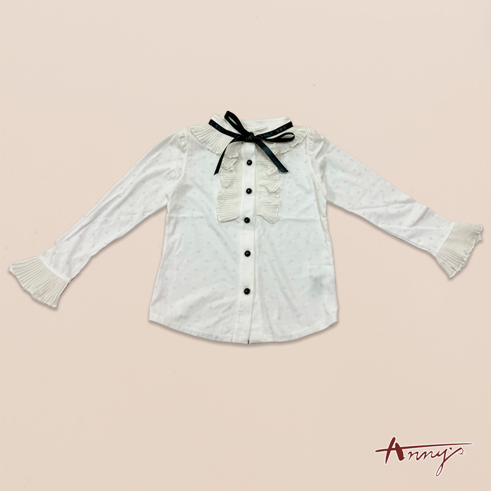 【ANNY’S 安妮公主】童裝 氣質純棉高領荷葉袖蝴蝶結秋冬款透氣長袖襯衫(3276白色)