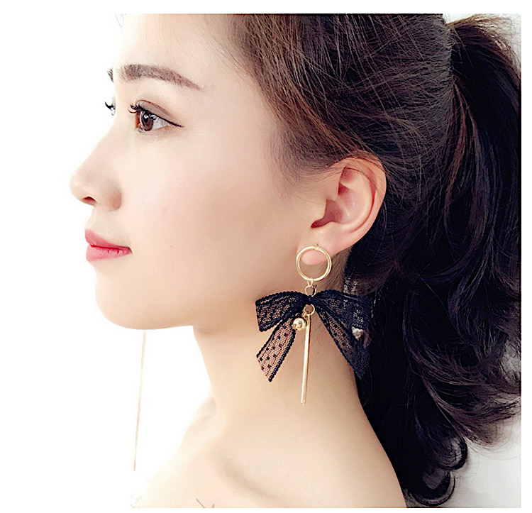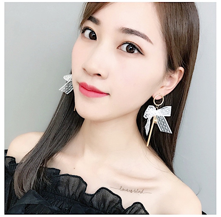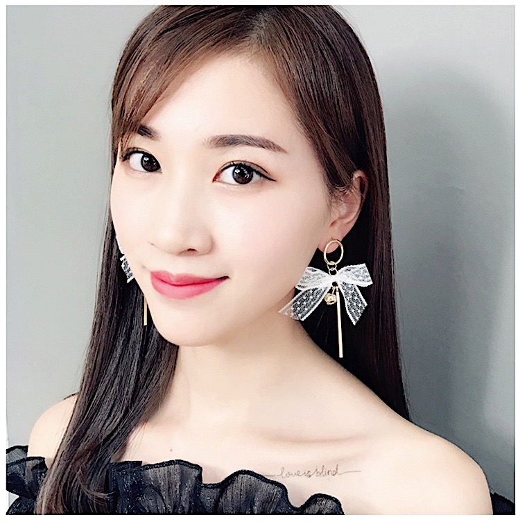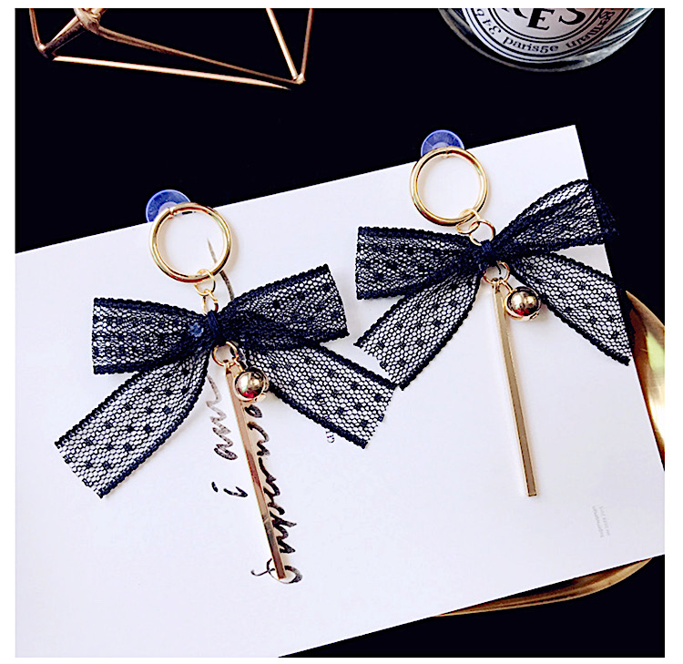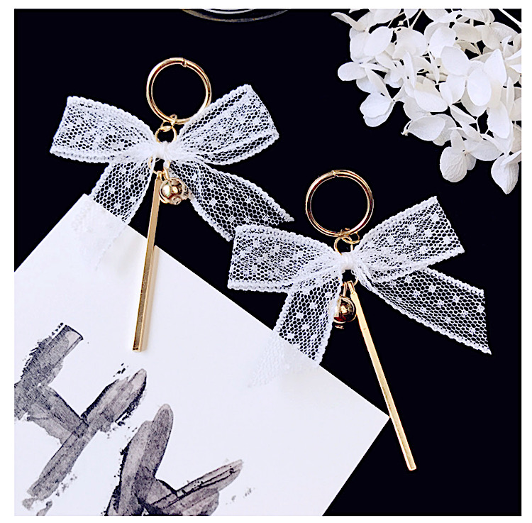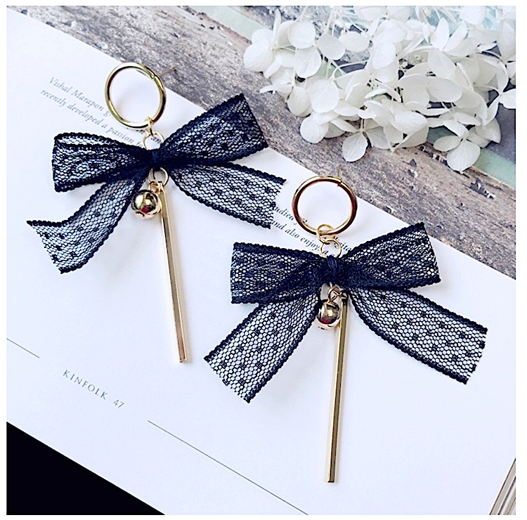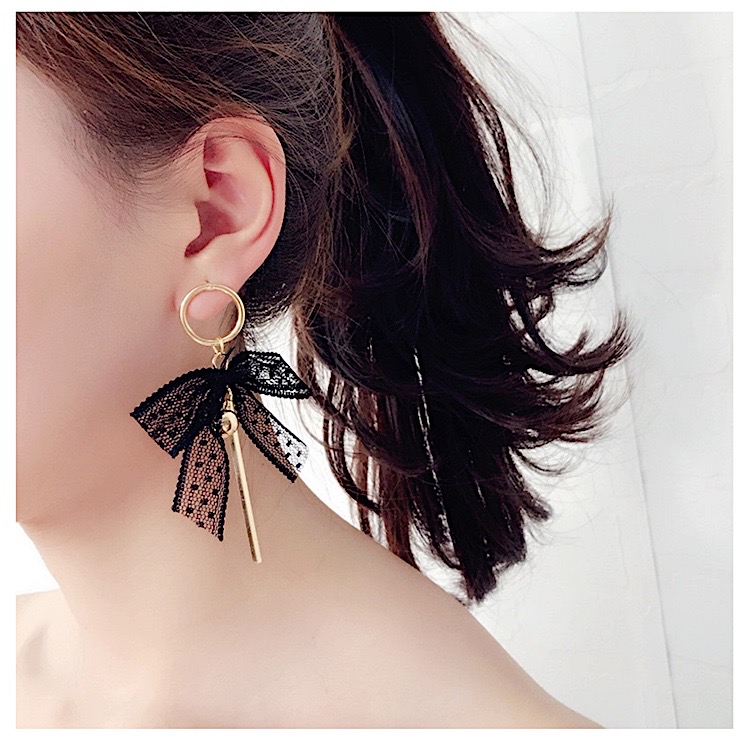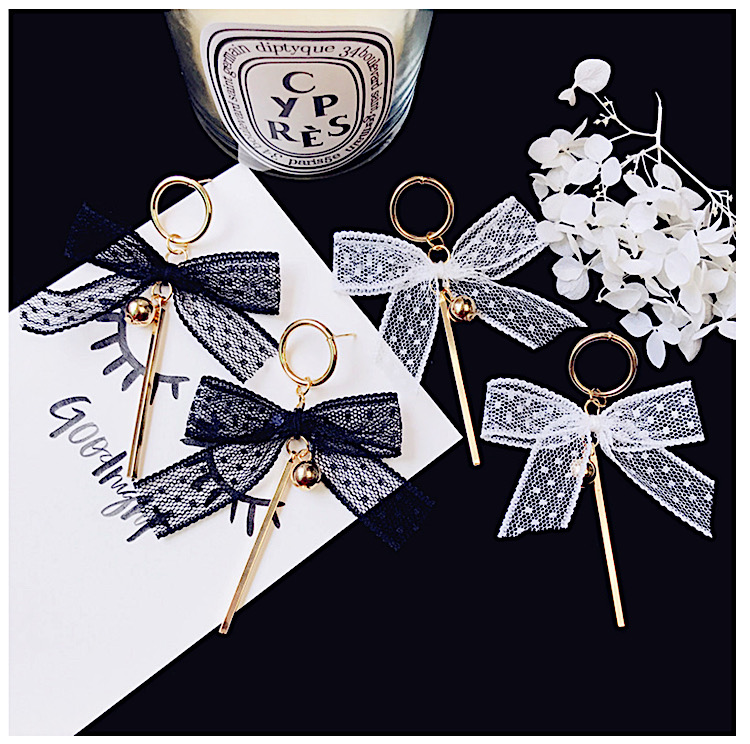 【89 zone】法式古典蕾絲蝴蝶絲帶淑女復古 飾品 耳飾 吊墜耳環 長款耳環 耳環(黑/白)