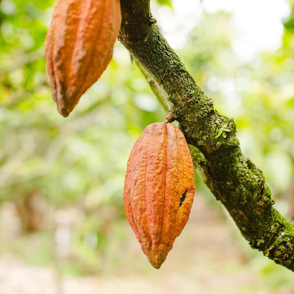 天然可可豆果實開莢後經過發酵、乾燥、烘焙、碾碎去殼、碾碎壓榨等步驟,提煉而出的Cacao可可。