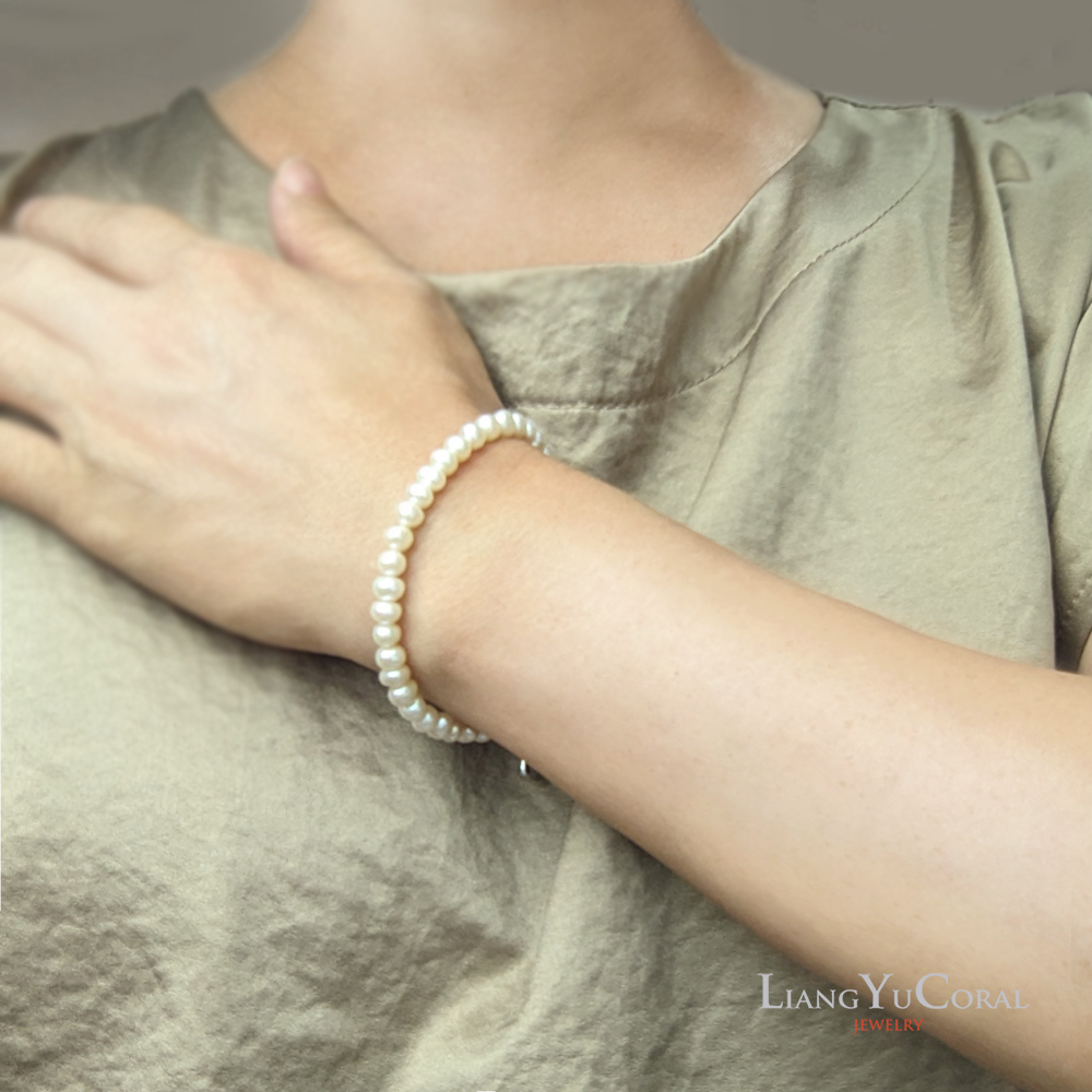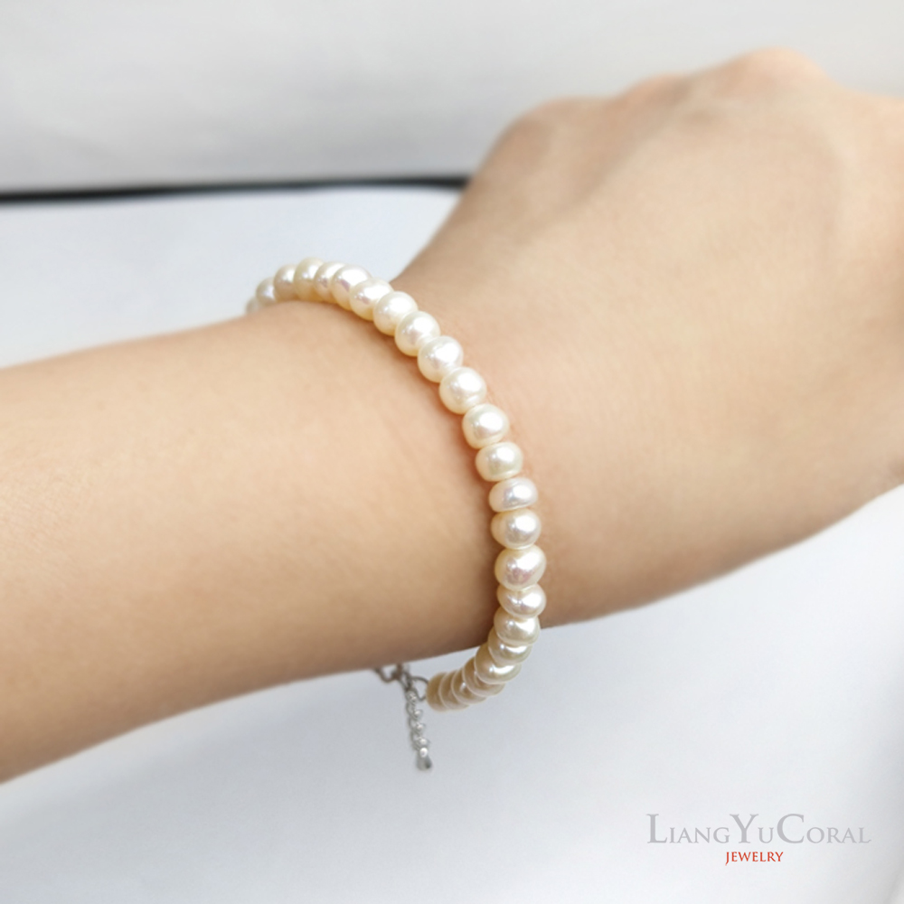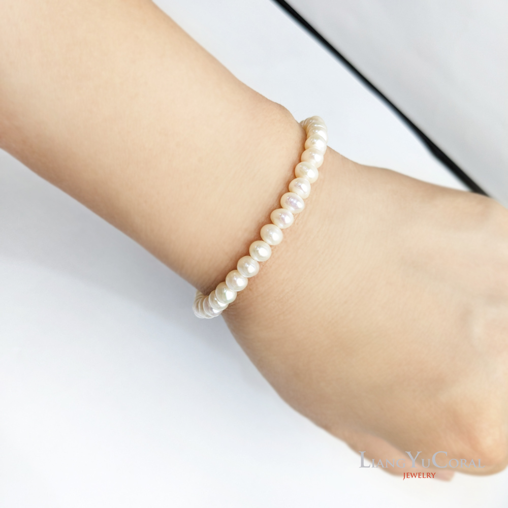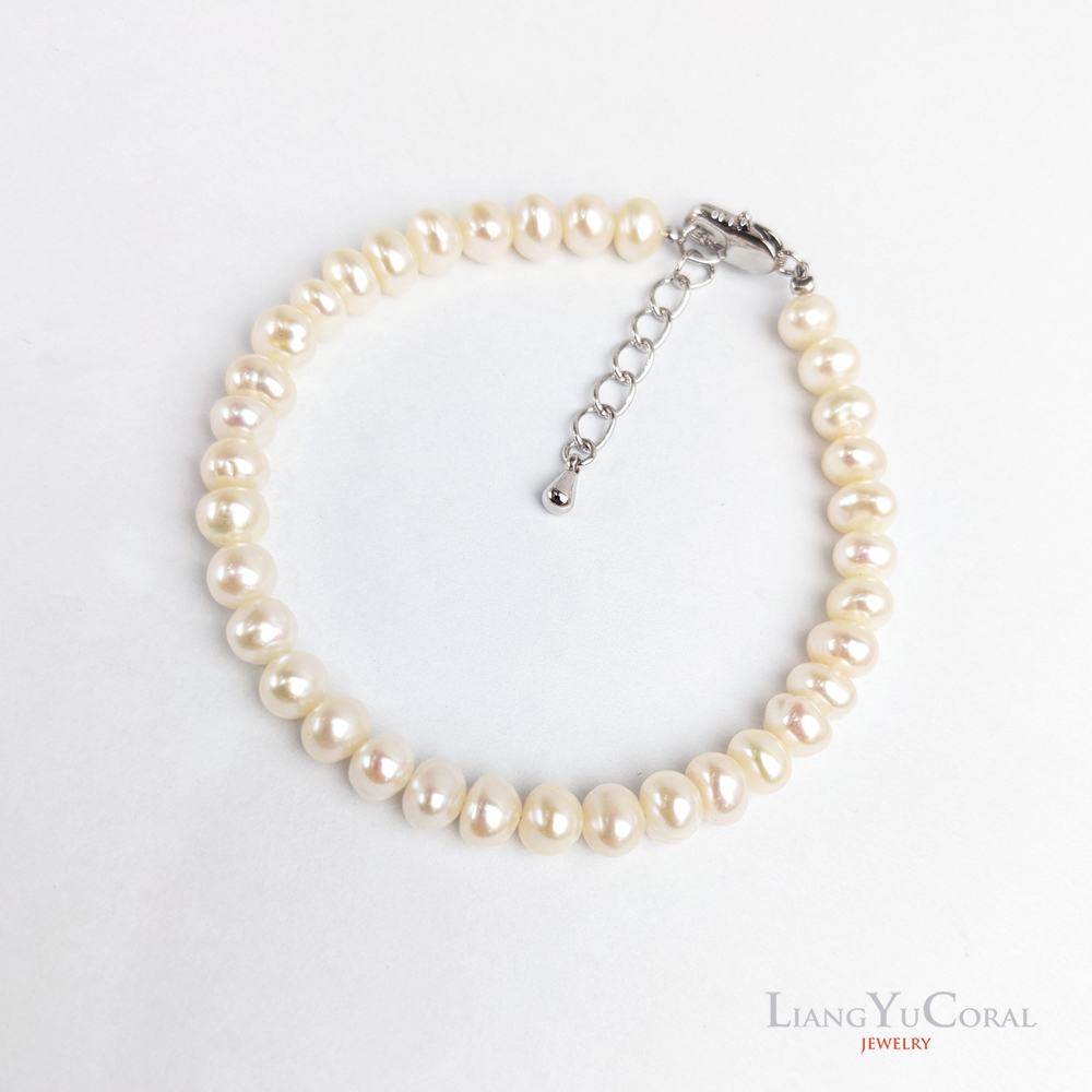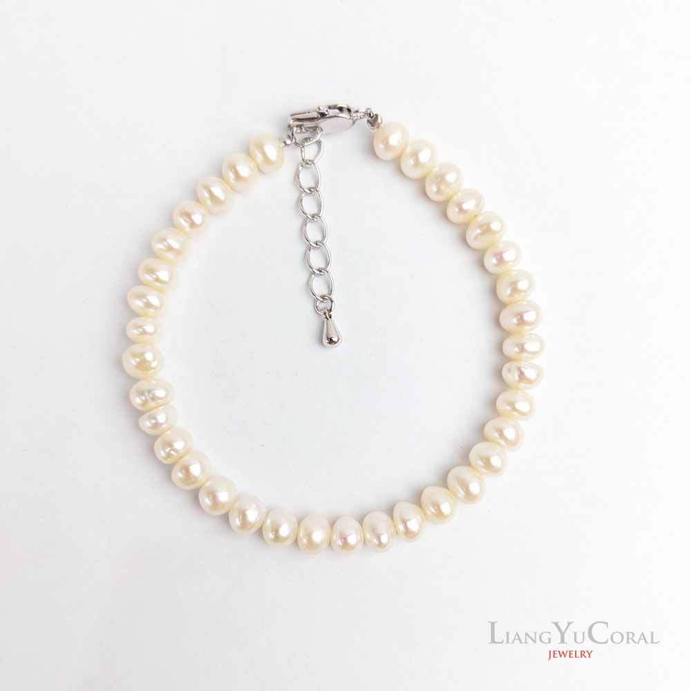 【大東山樑御珊瑚】天然珍珠自然形手鍊5-5.5mm(白色珍珠)
