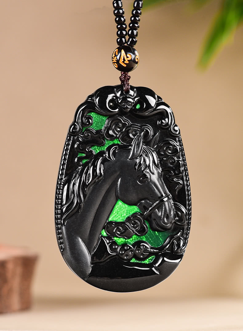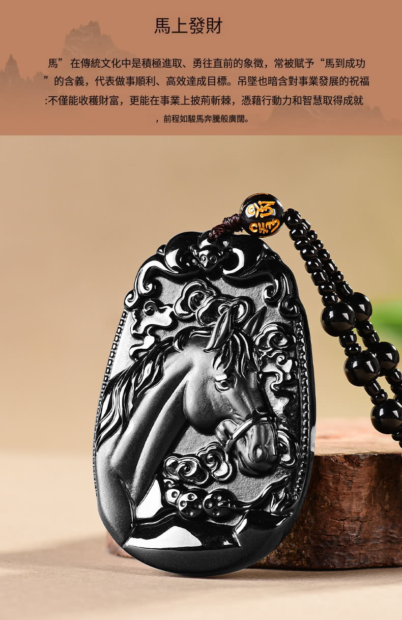 【Paiya 派亞】天然a貨翡翠墨翠馬上發財玉石吊墜冰種掛件玉墜男女款項鍊(送禮好物/交換禮物)