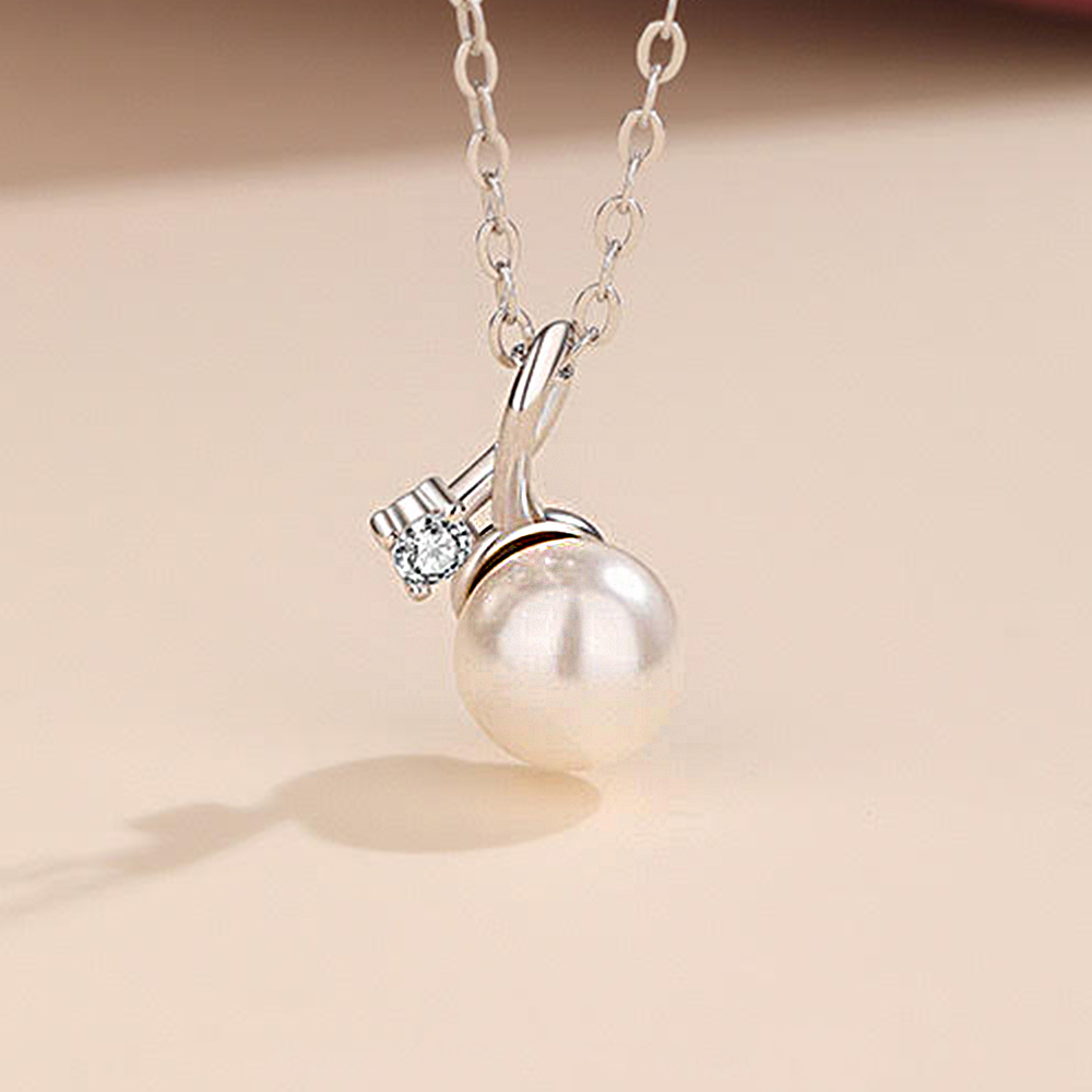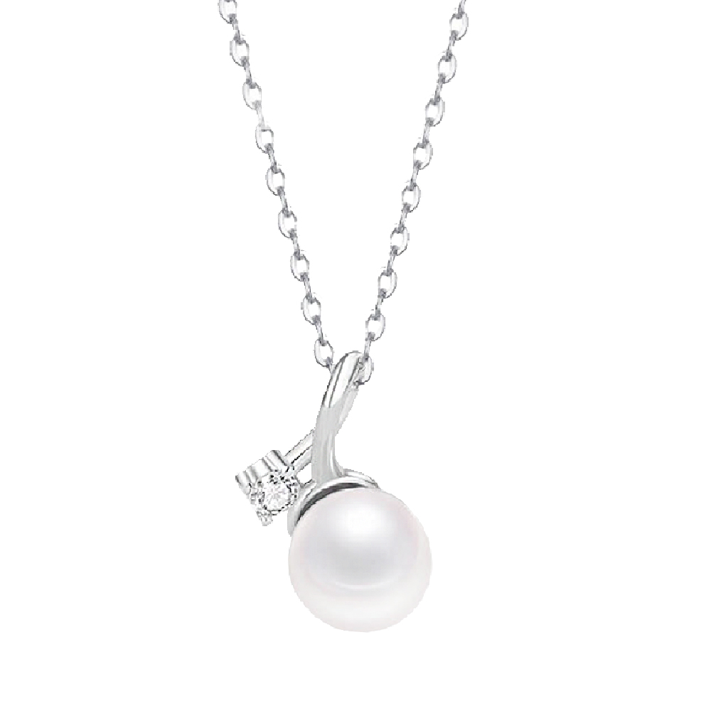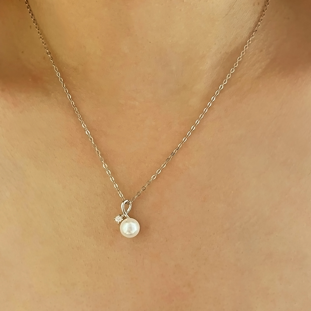單顆貝珠與單顆四爪亮鑽頸鍊