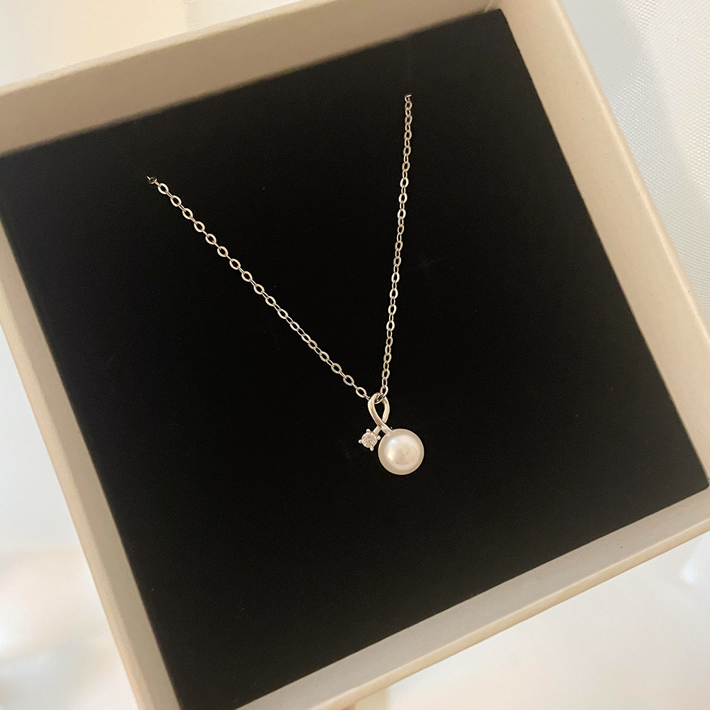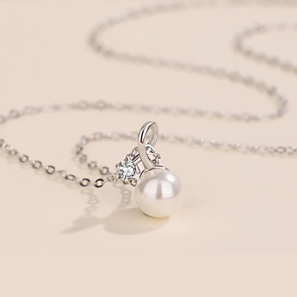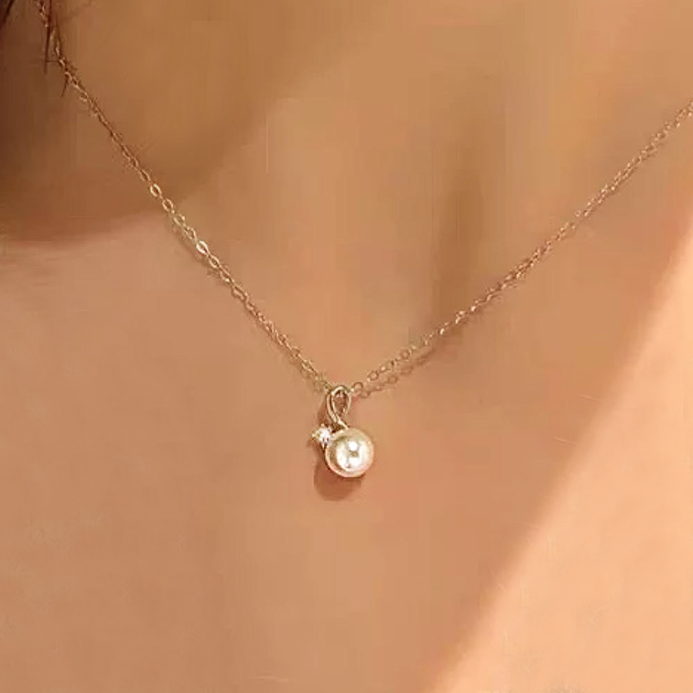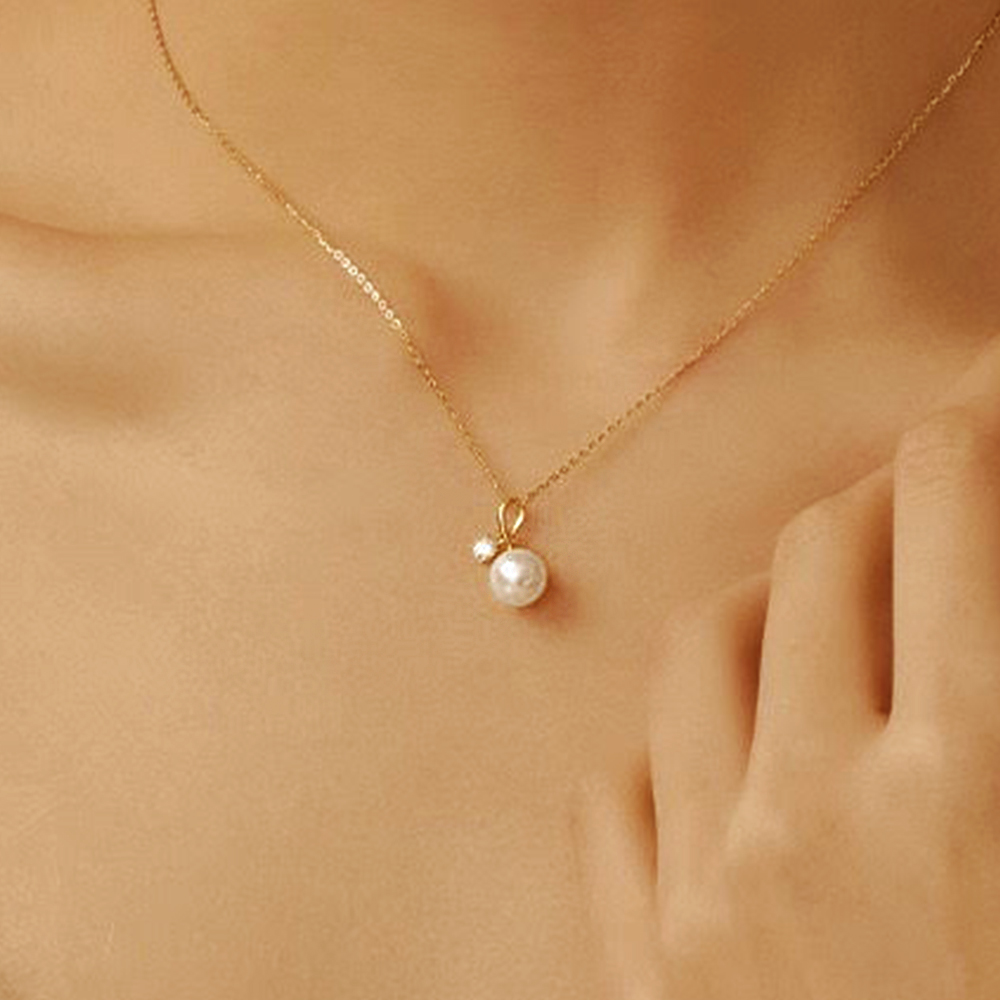 單顆貝珠與單顆四爪亮鑽頸鍊