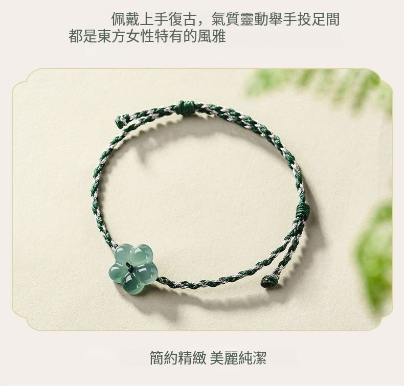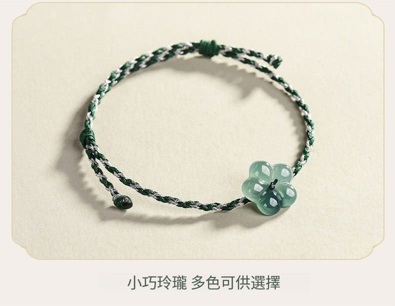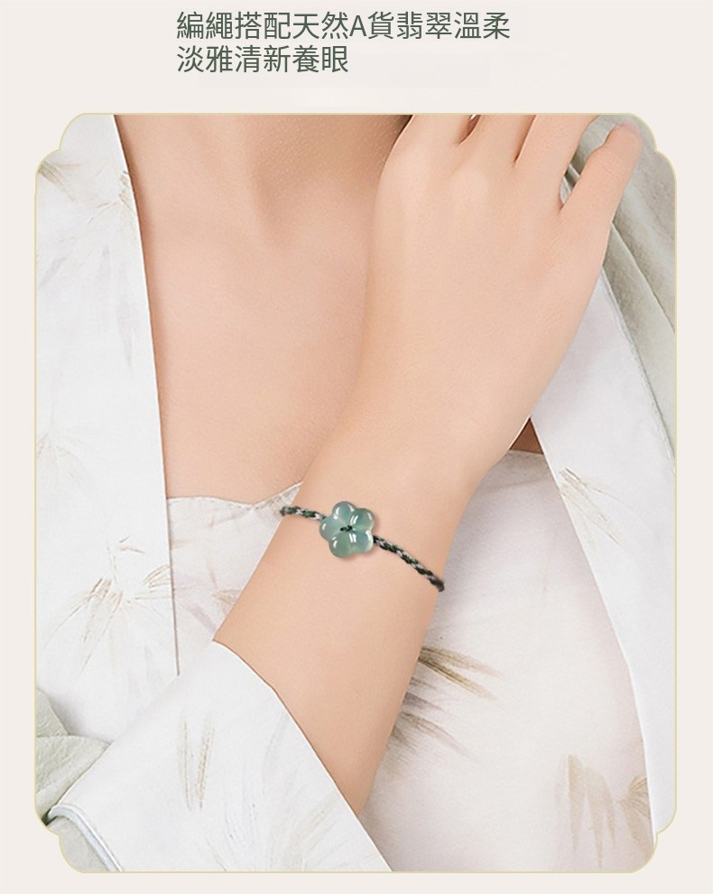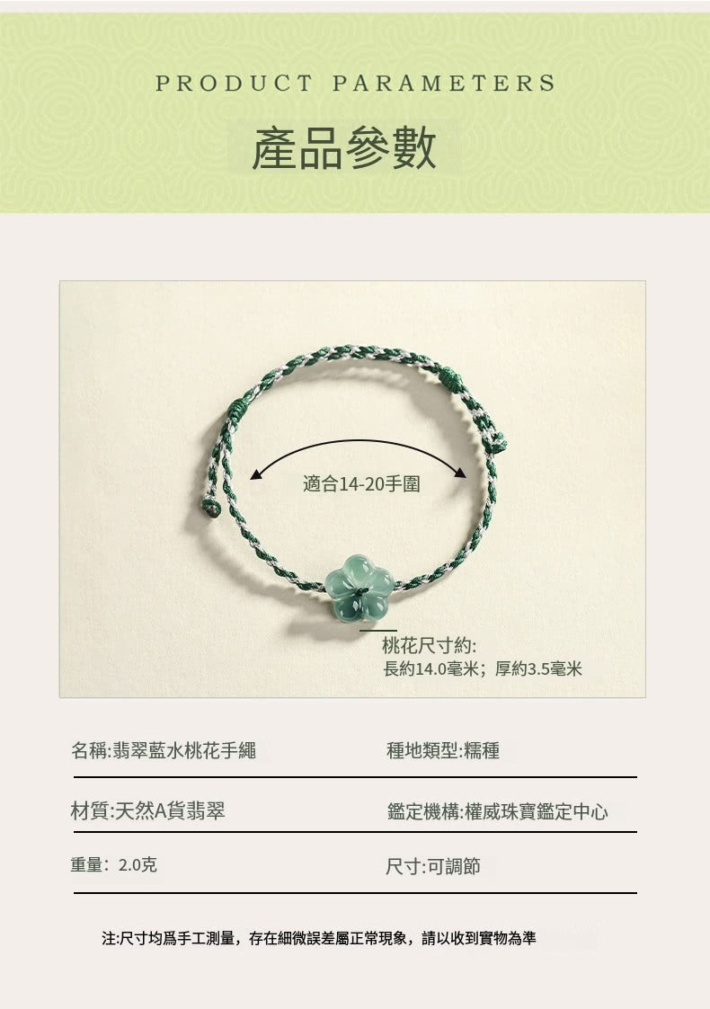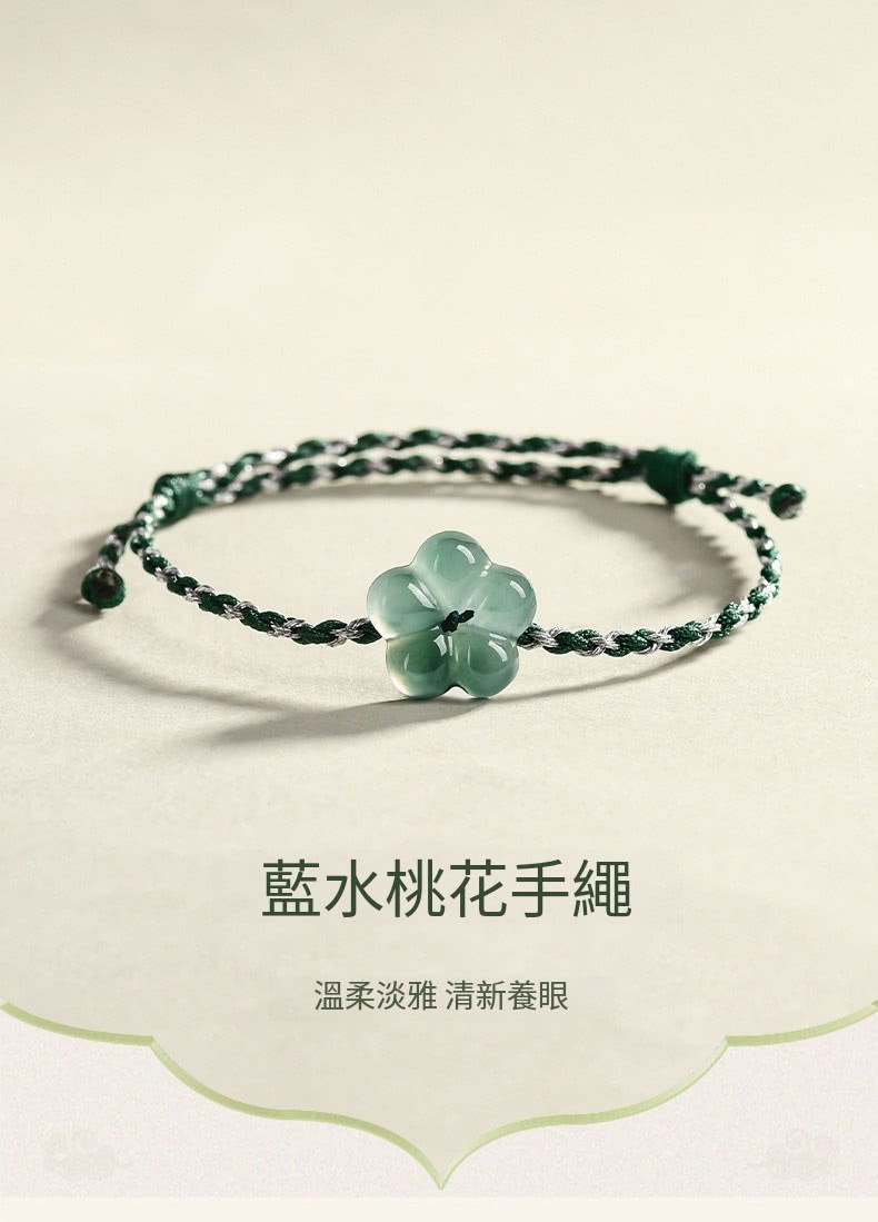 【Paiya 派亞】天然A貨翡翠藍水桃花手鏈有錢花玉石手工編織男女款情侶手繩(送禮好物/交換禮物)