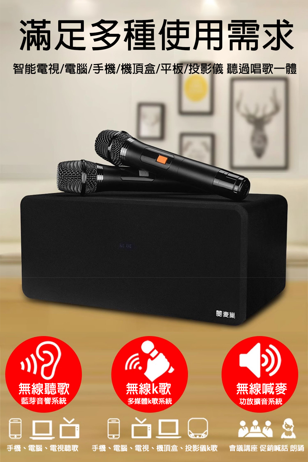 S10pro行動KTV 重低音無線麥克 藍芽喇叭(充電音響 充電雙麥 內置聲卡)