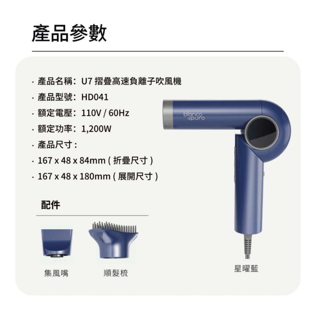 配件: 360° 磁吸風嘴磁吸式設計、順髮梳