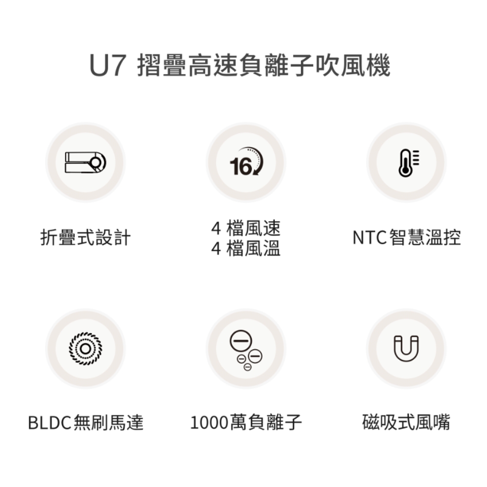 16 種吹髮組合(風速 × 風溫)提高自由調整度