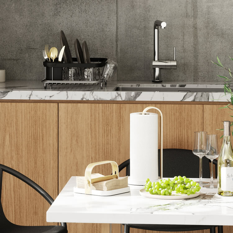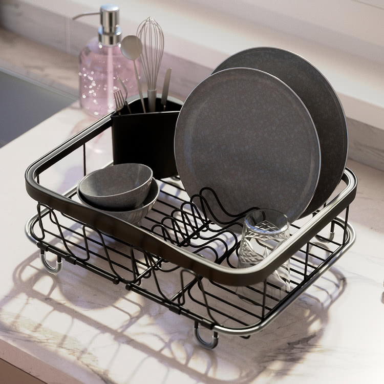 【UMBRA】Sinkin伸縮餐具碗盤瀝水架 墨黑36.5cm / 碗盤收納架 流理臺架