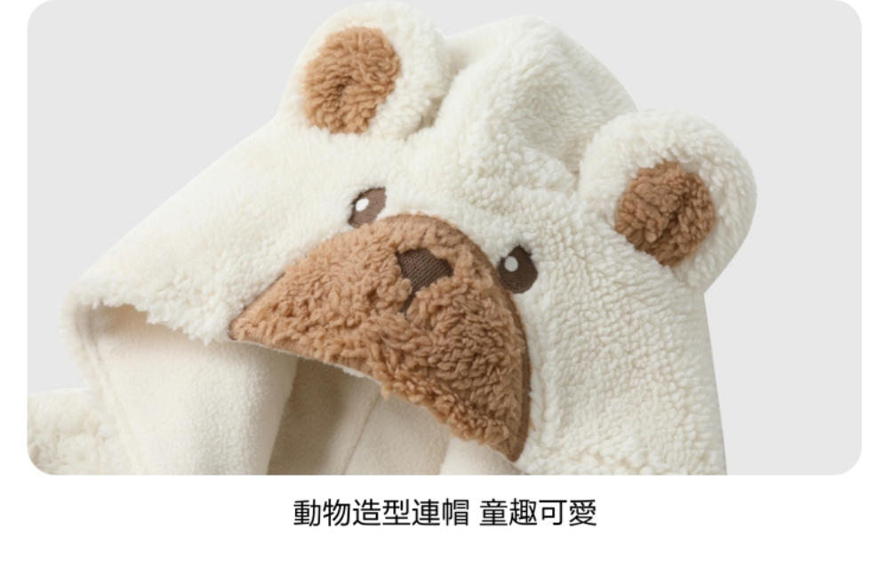 【GAP】嬰兒裝 Logo刺繡動物造型連帽長袖包屁衣/連身衣-粉色(805377)