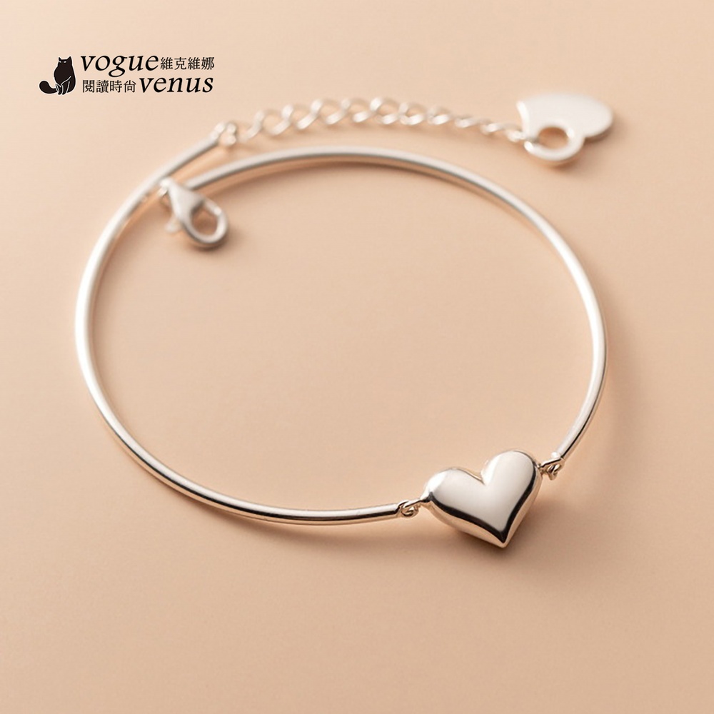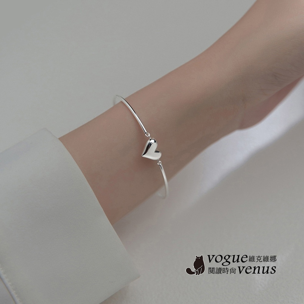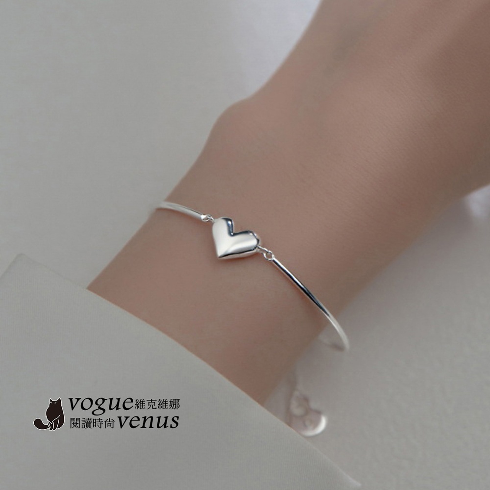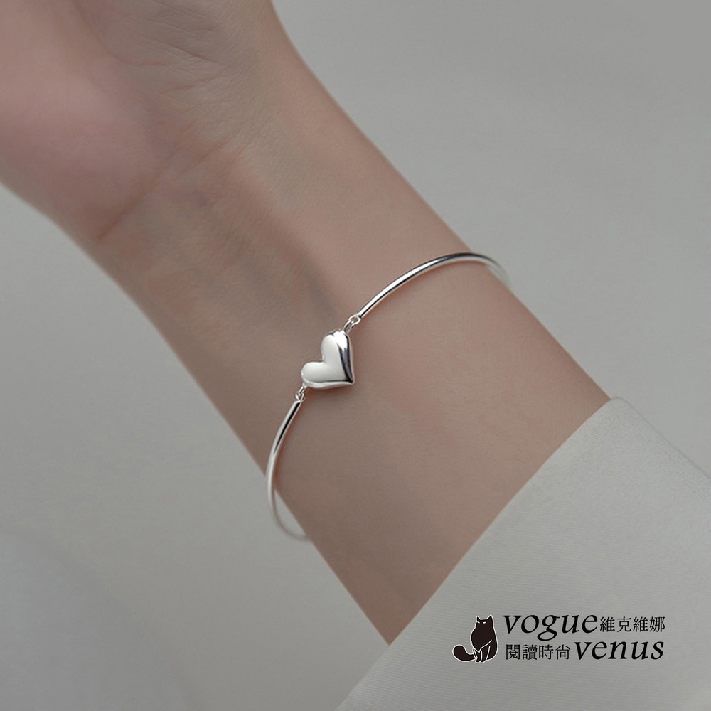 【維克維娜】3D立體愛心開口手鍊925純銀手環