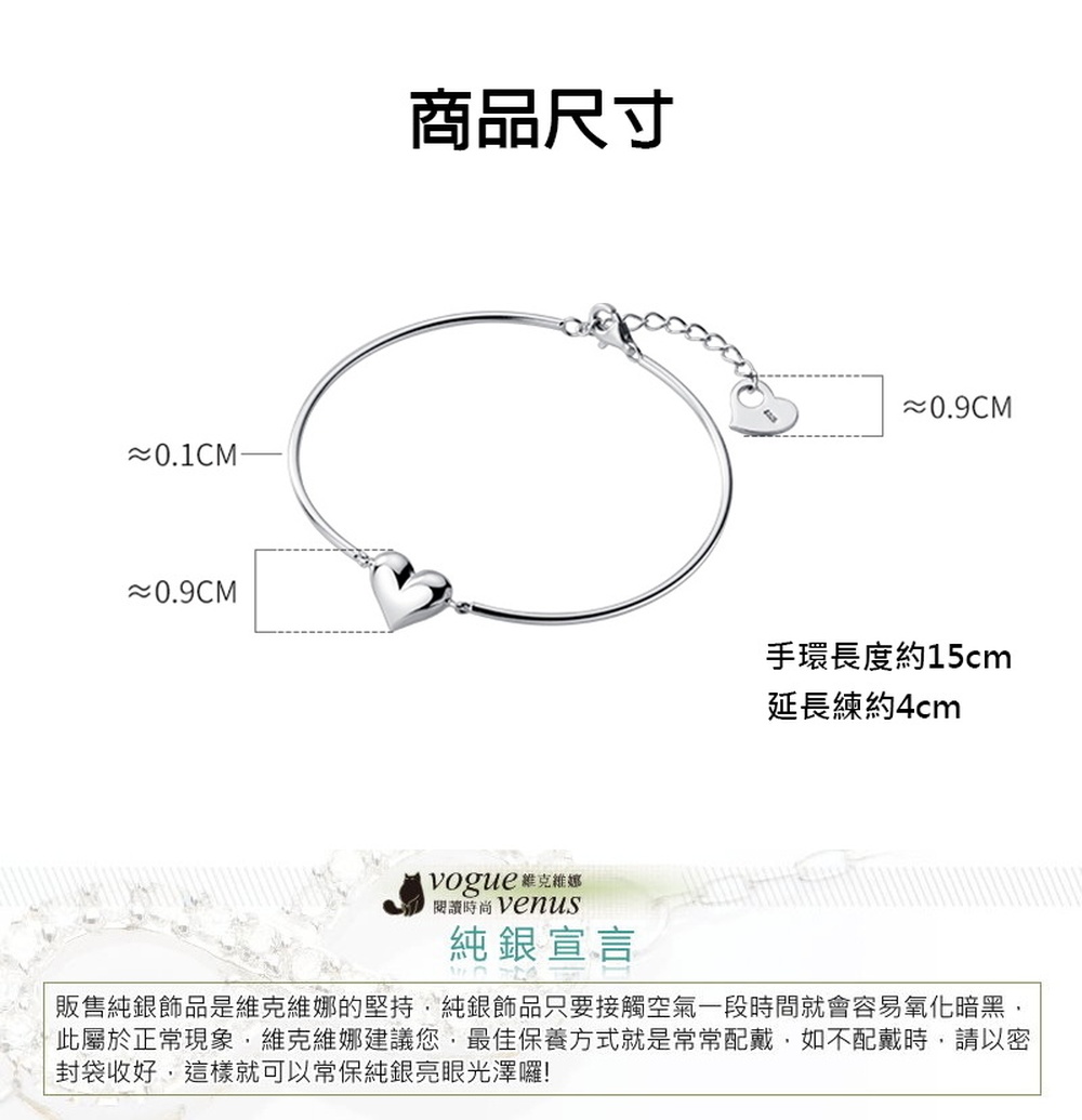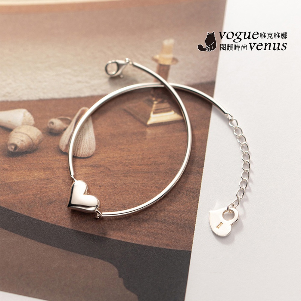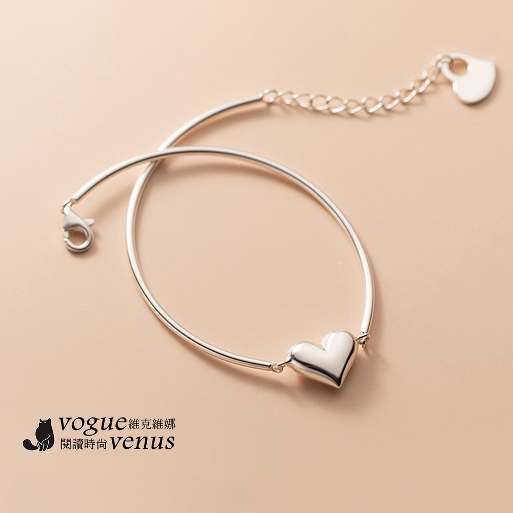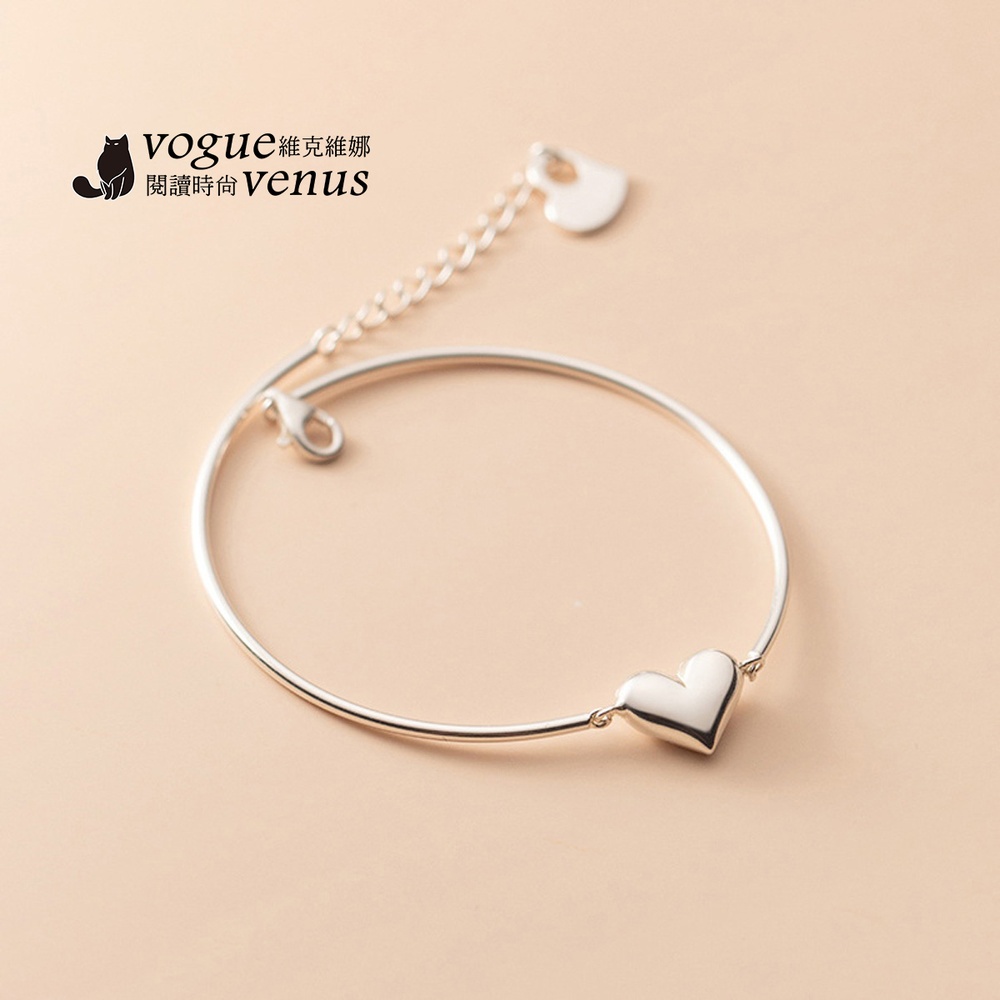 【維克維娜】3D立體愛心開口手鍊925純銀手環