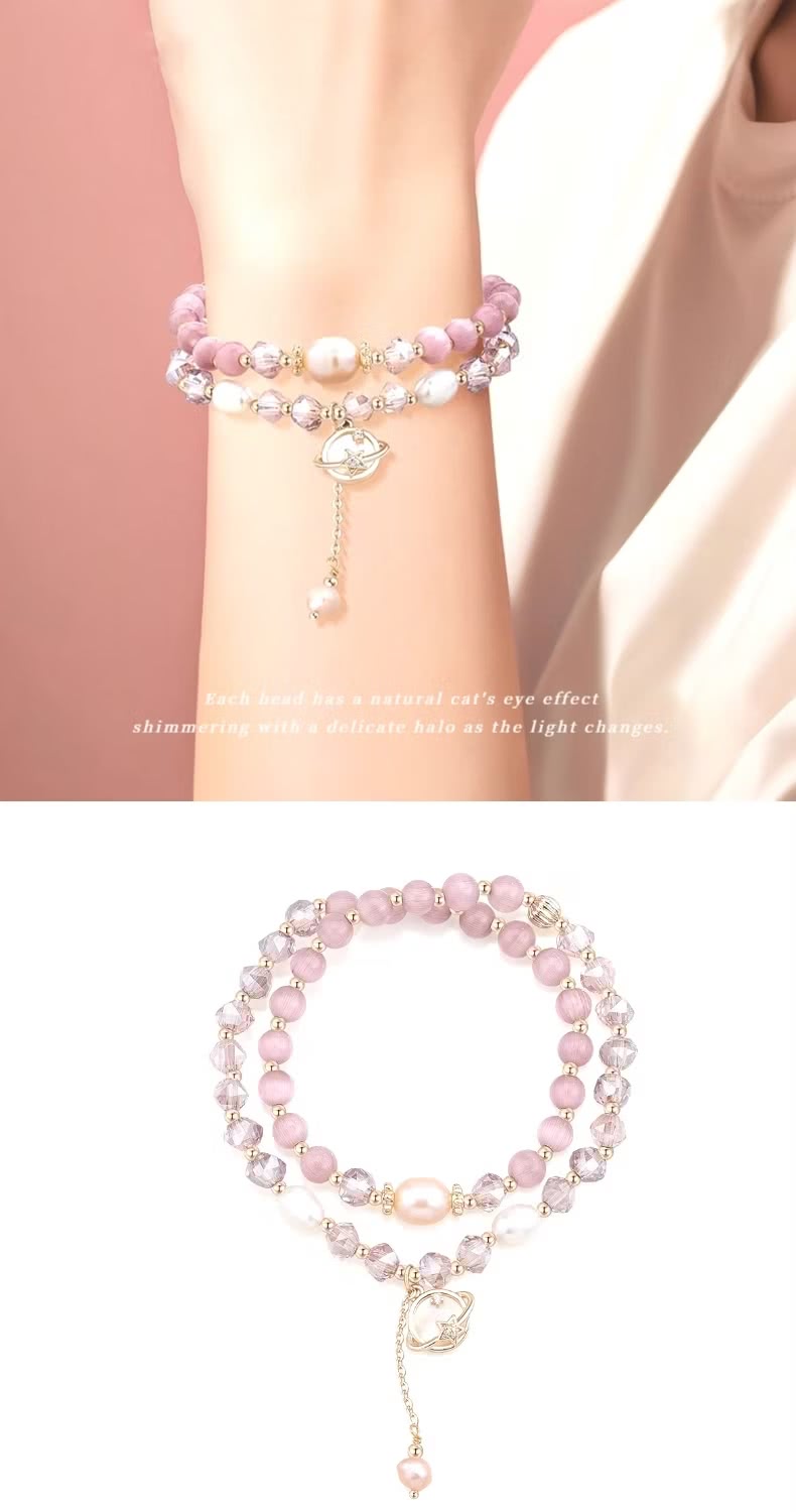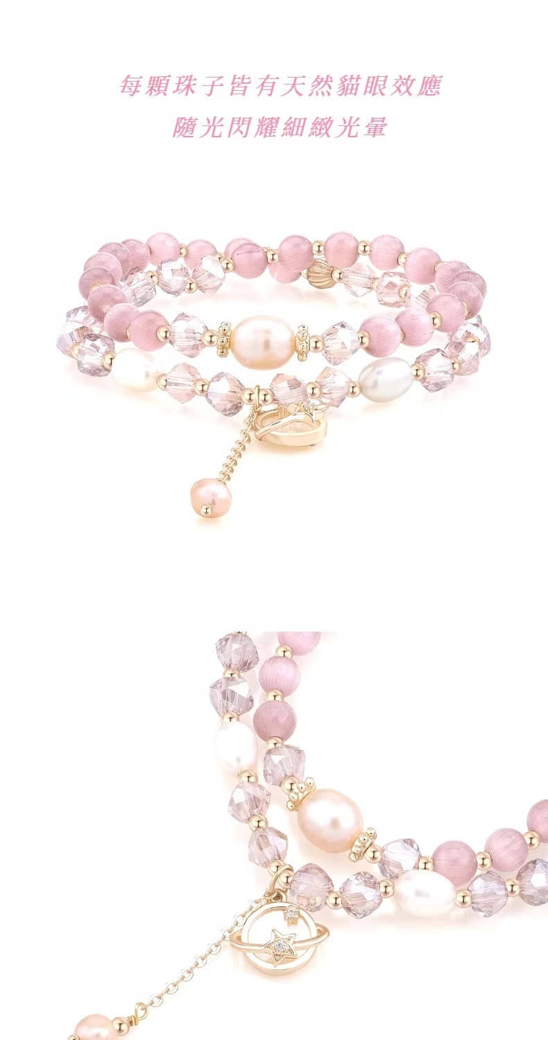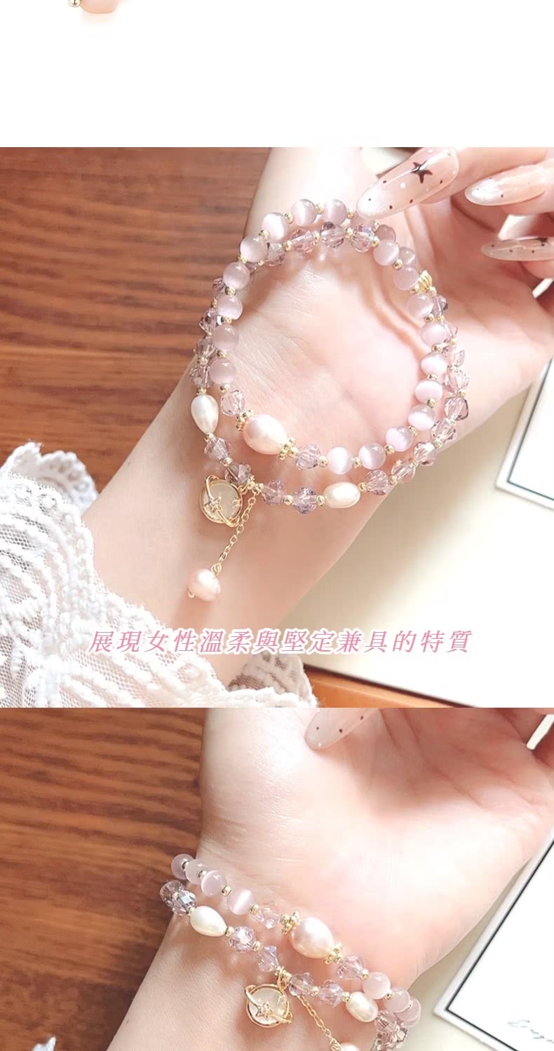 【小眾高級】貓眼石雙圈手鍊(疊戴 多圈 女 甜美 百搭 手串 禮物)