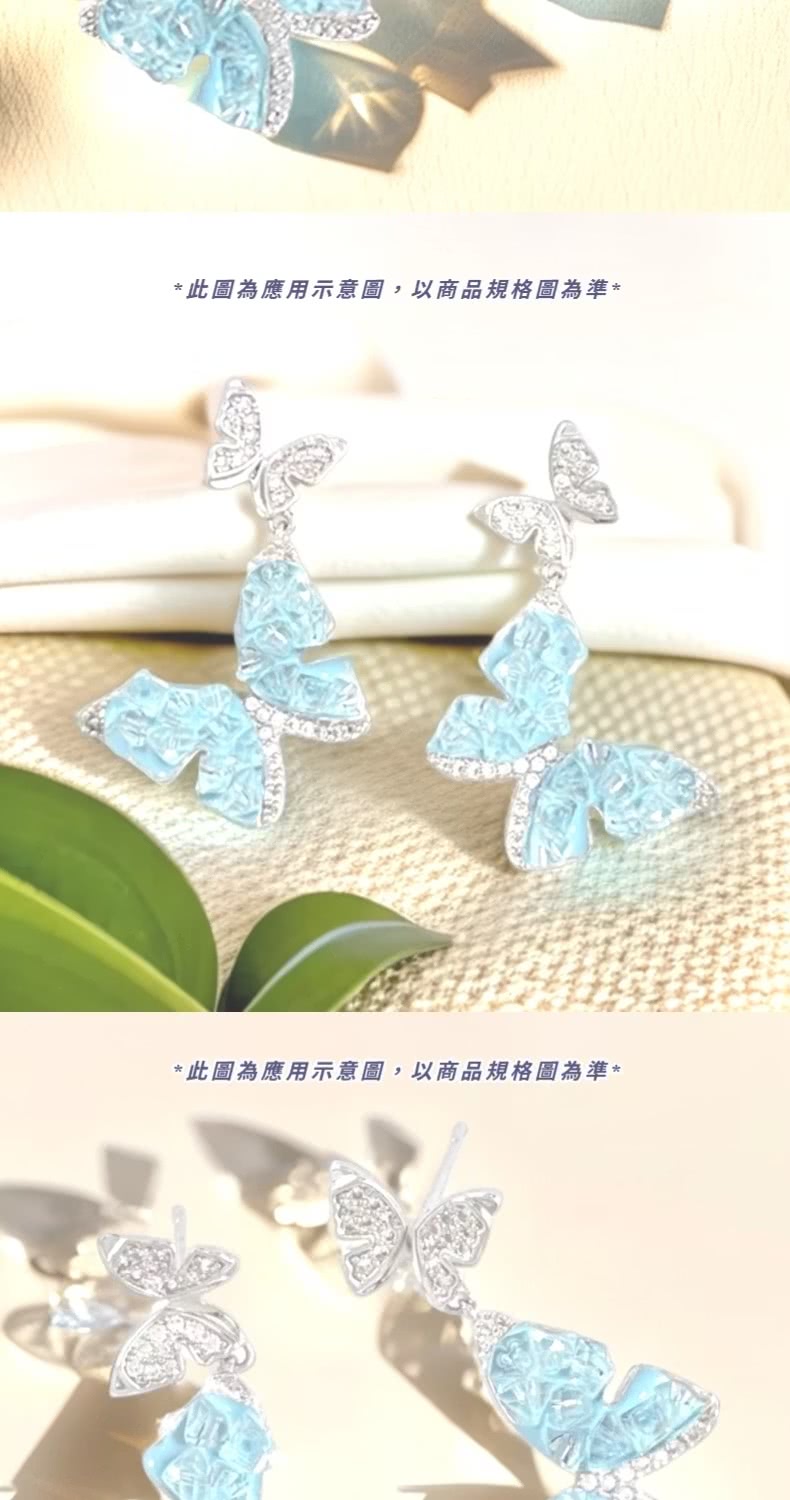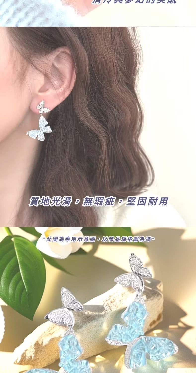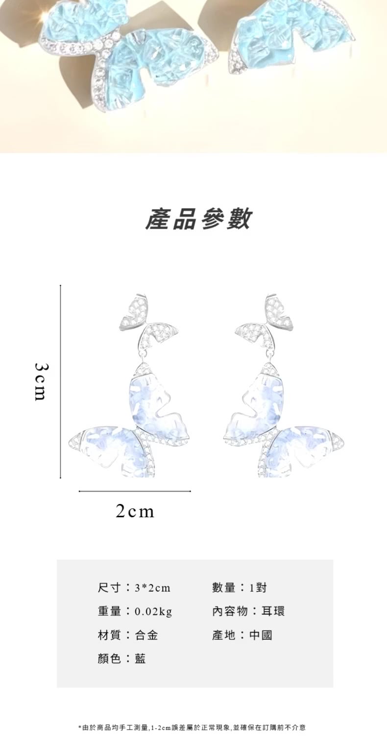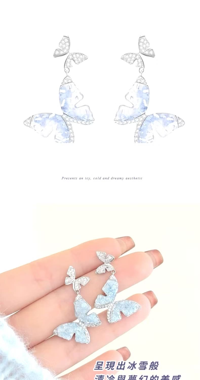 【夏季碎冰】藍色碎冰閃鑽蝴蝶耳環1對(冰晶耳飾 鑲鑽 氣質 時尚 女生 禮物)