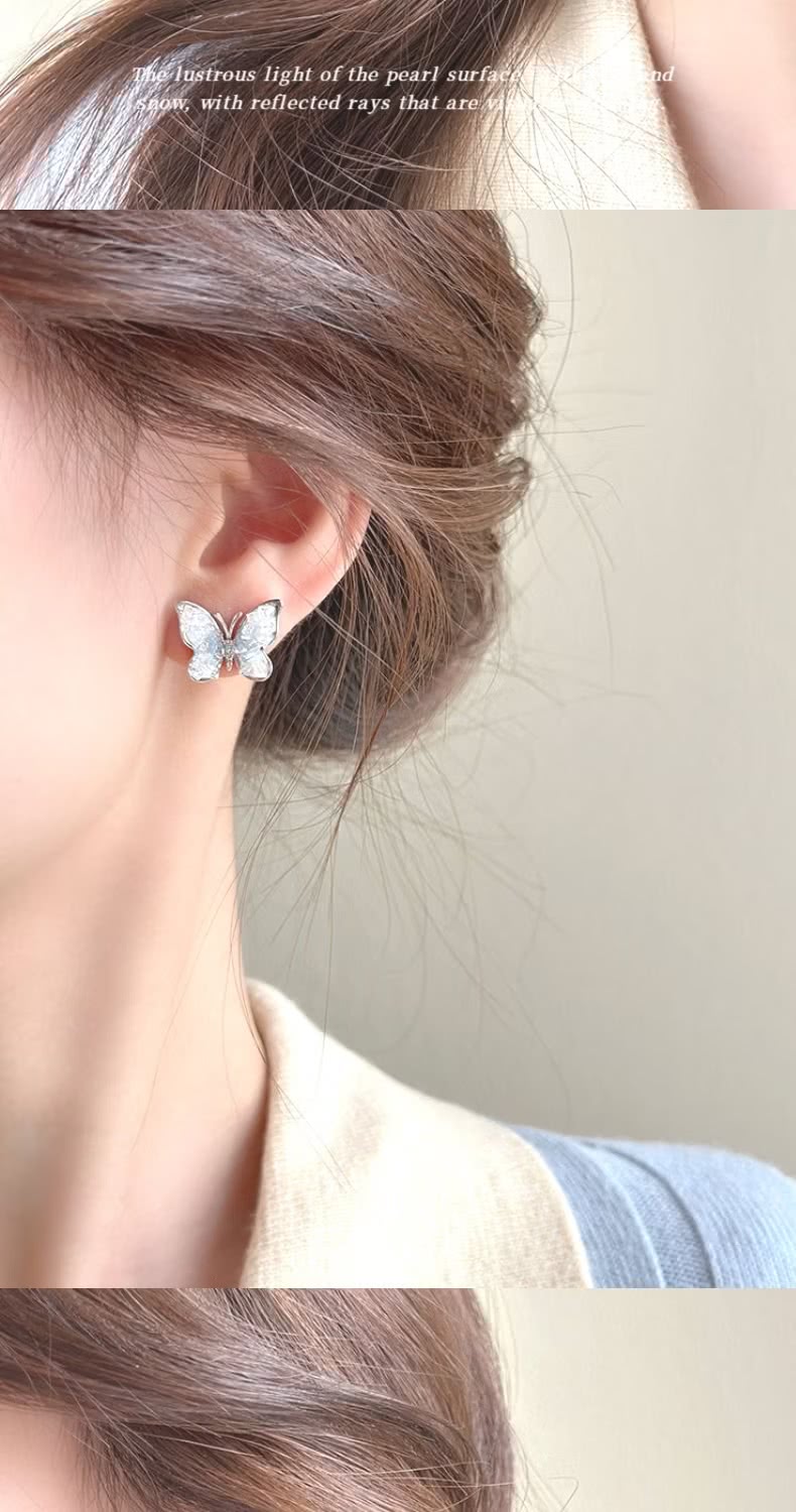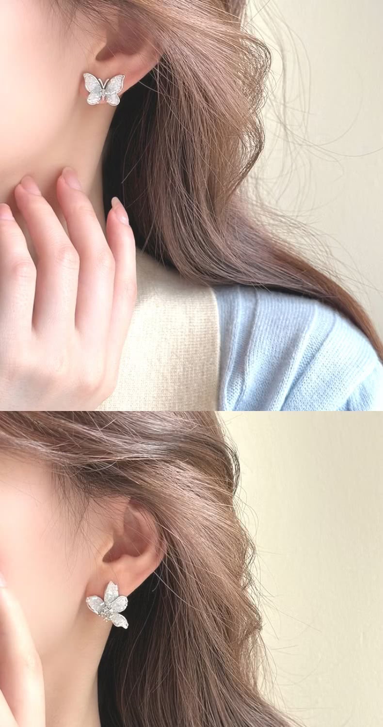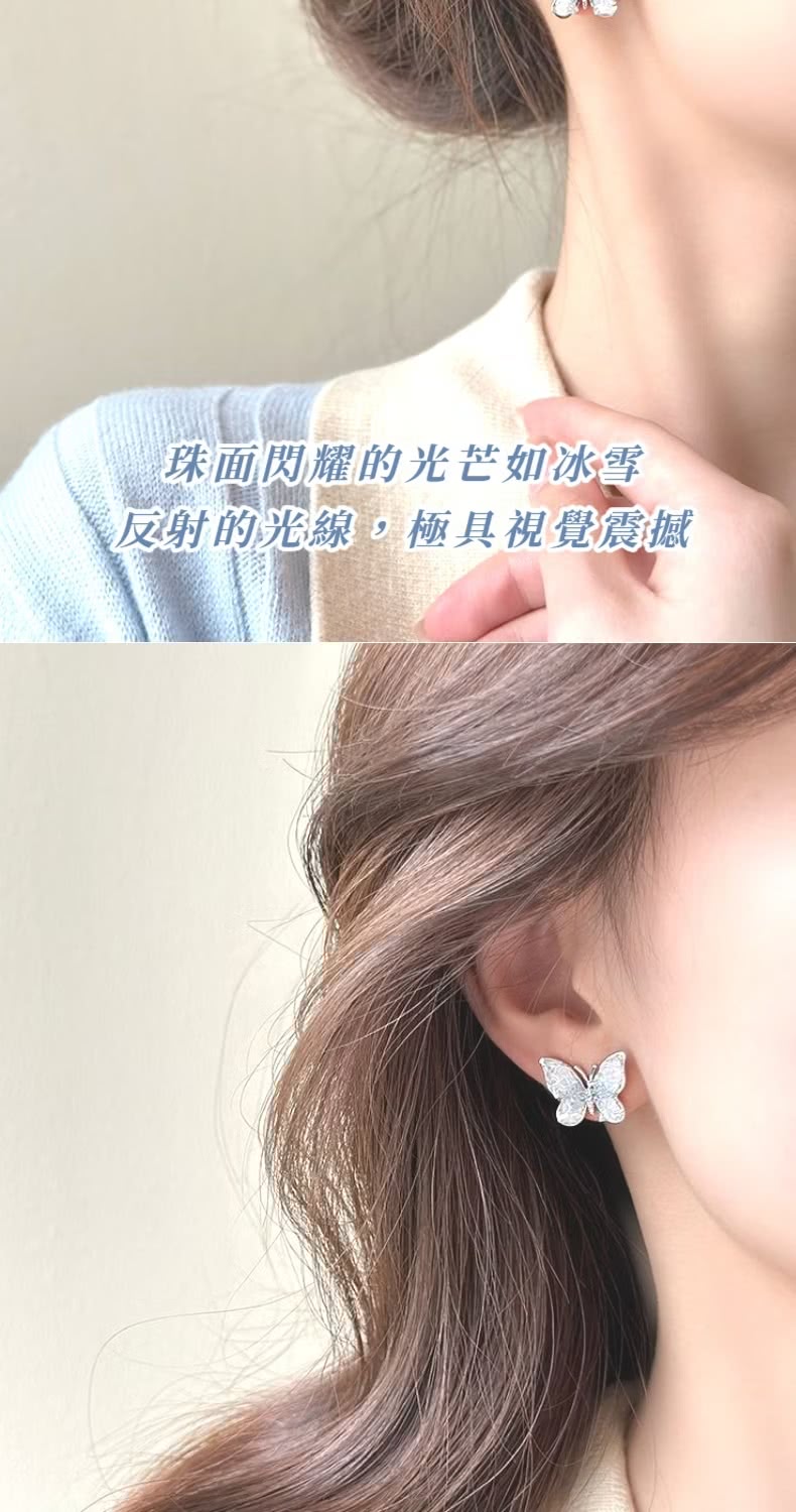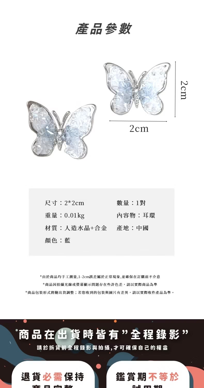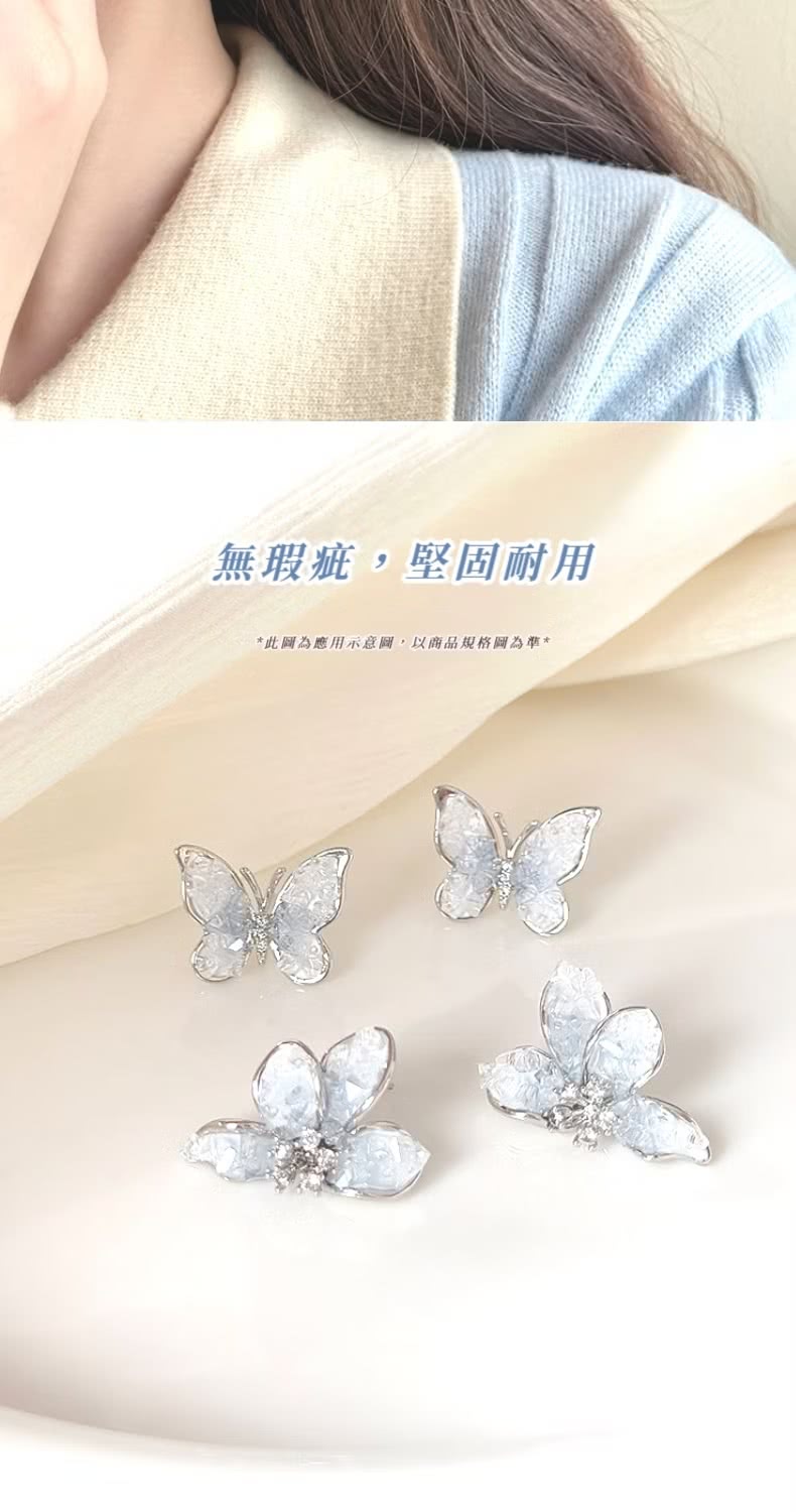 【莫藍迪色】漸變藍水晶蝴蝶耳釘1對(耳針 耳環 配飾 耳飾 復古 輕奢 氣質 女生 飾品)