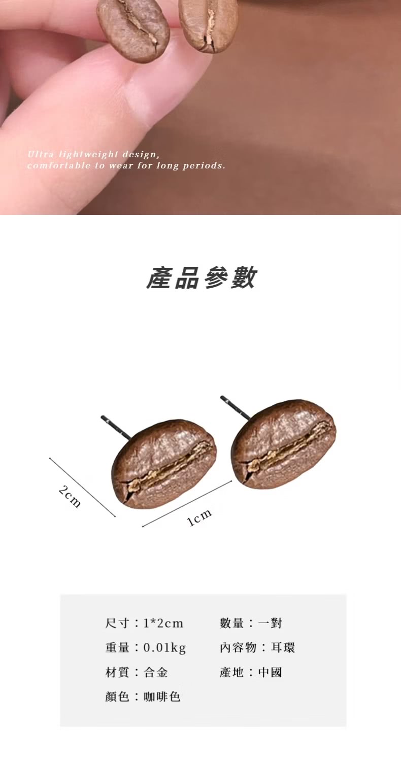 【文藝少女】日系ins簡約文青咖啡豆耳環(耳針 耳釘 耳飾 飾品 時尚穿搭 文藝)