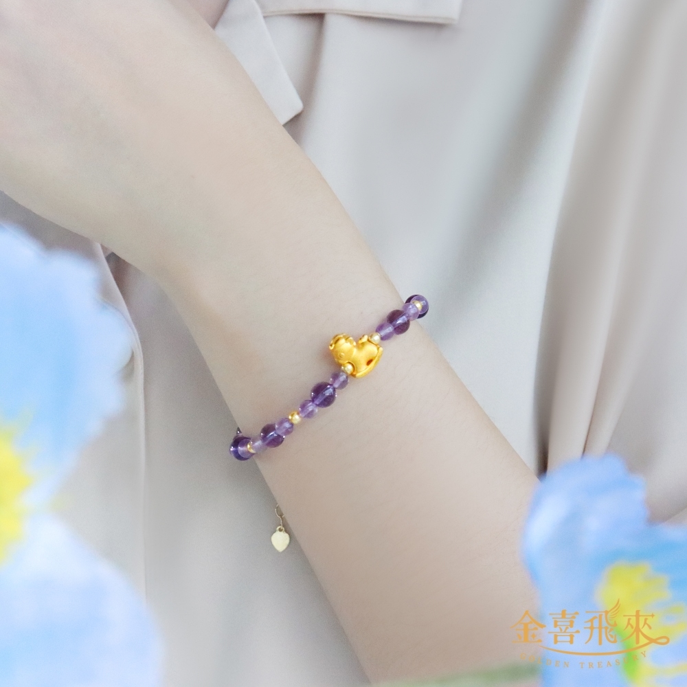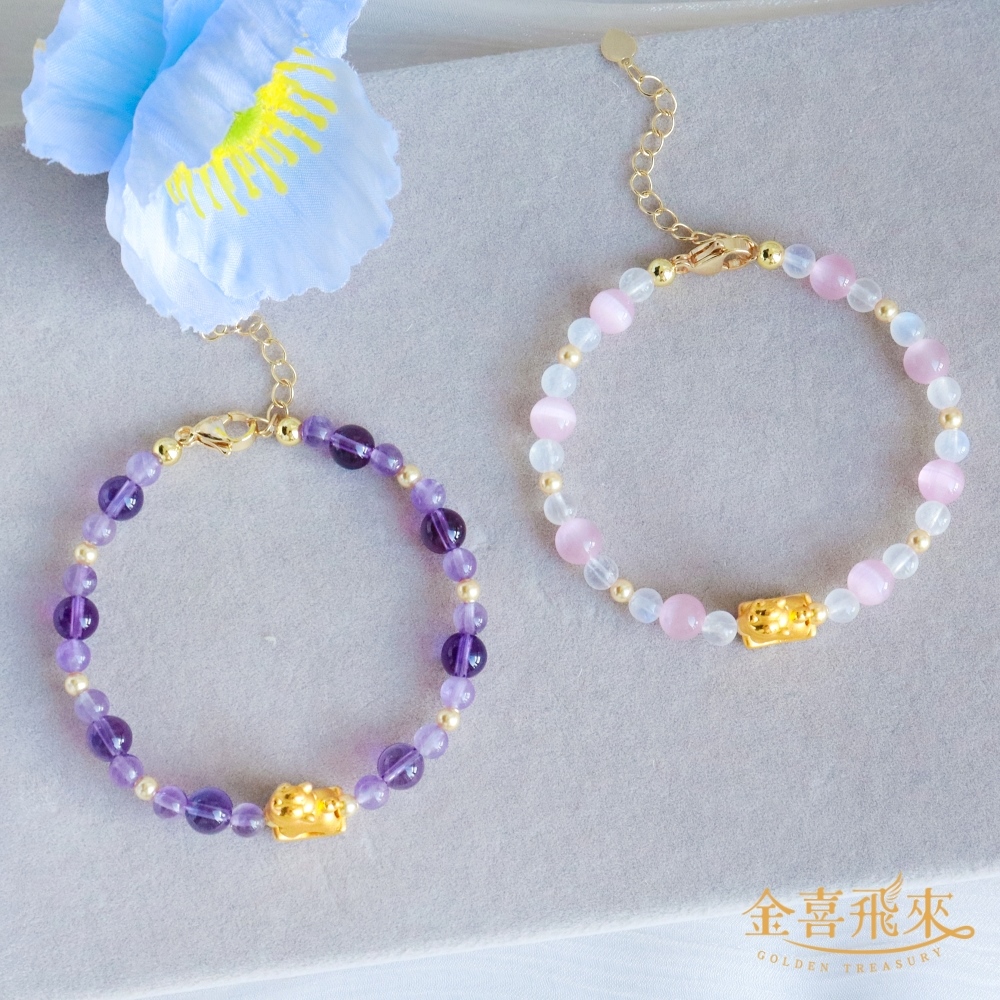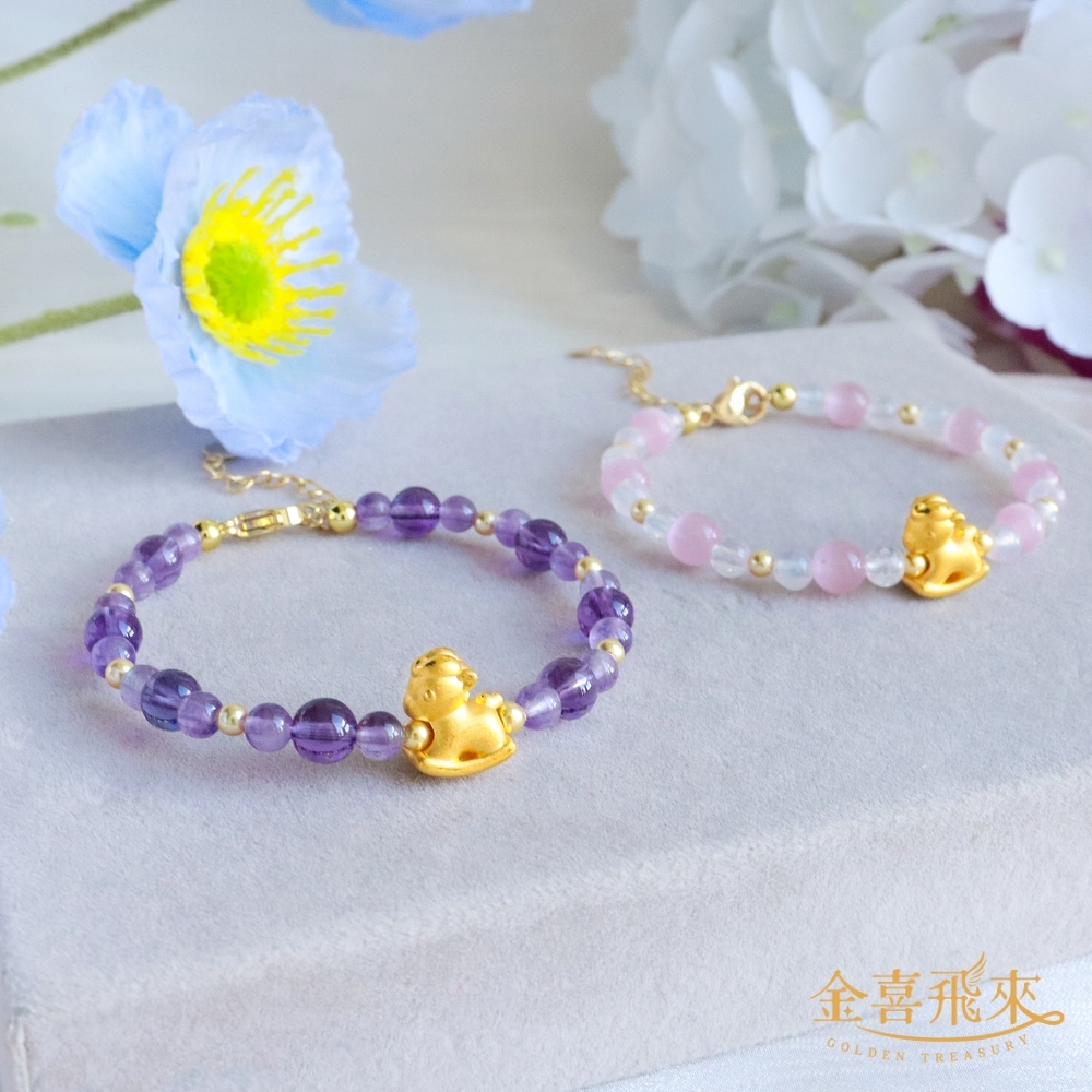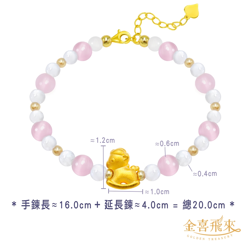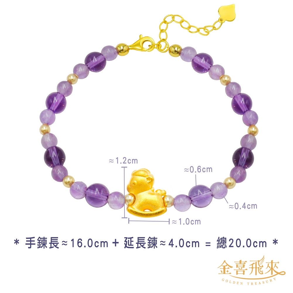 【金喜飛來】黃金手鍊搖搖馬水晶串多選(0.20錢±0.03)