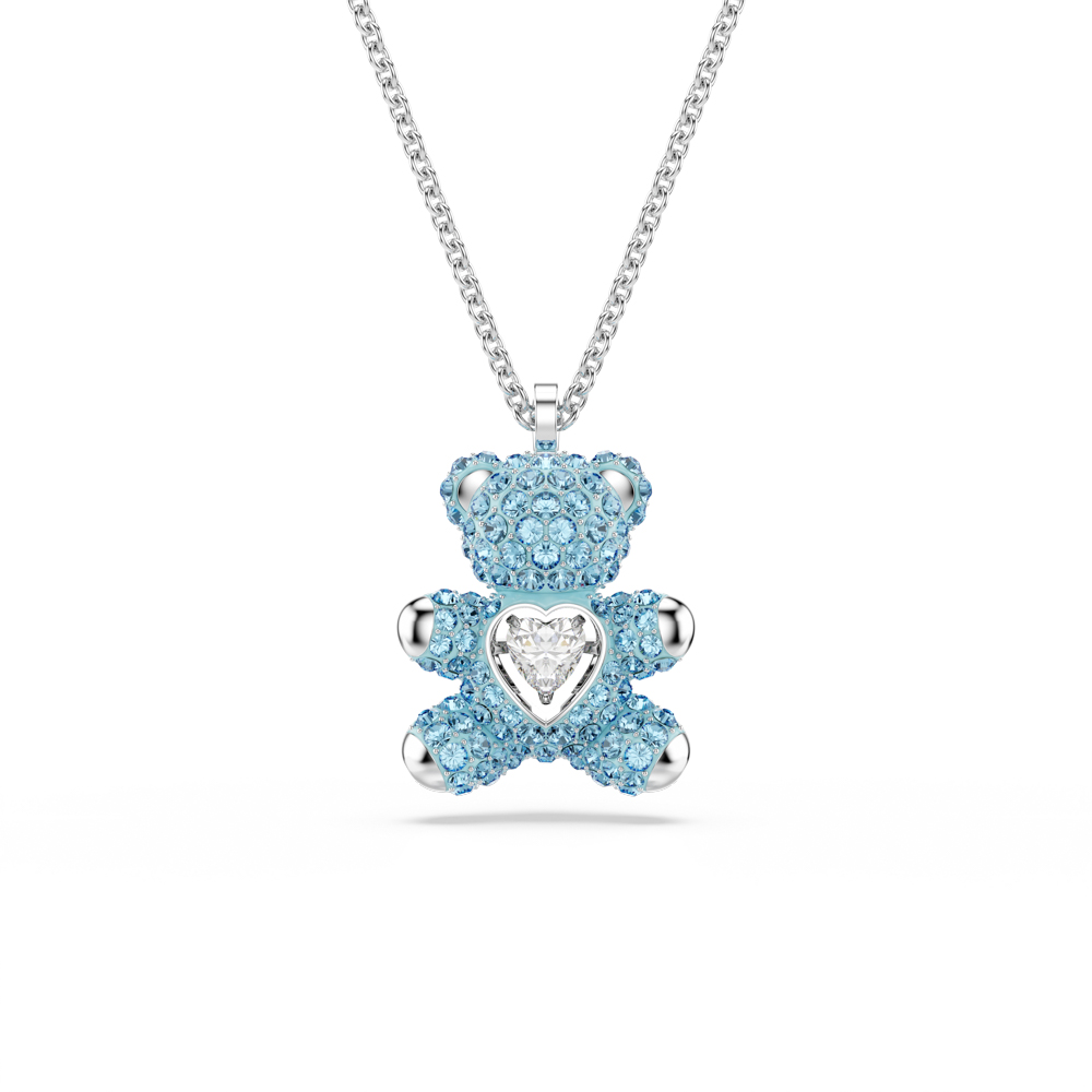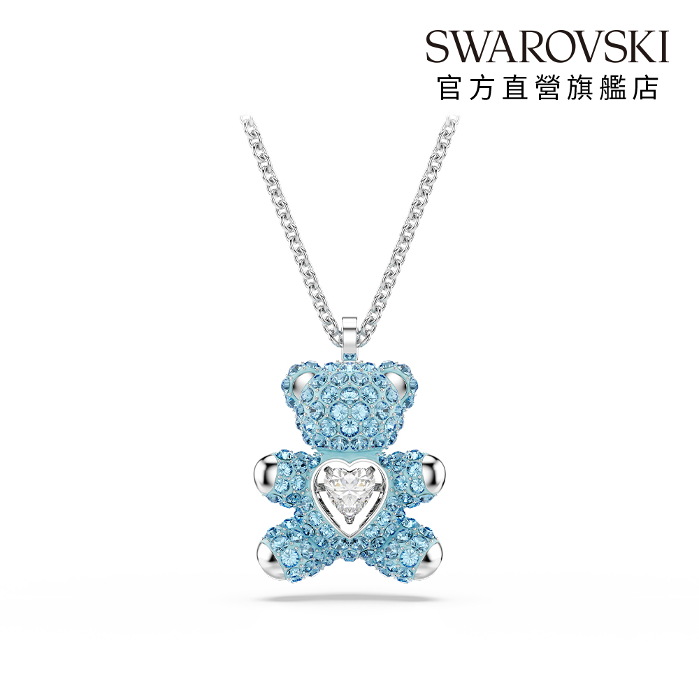 【SWAROVSKI 施華洛世奇】Teddy 鏈墜 藍色 泰迪熊 鍍白金色(情人節禮物)