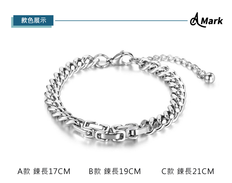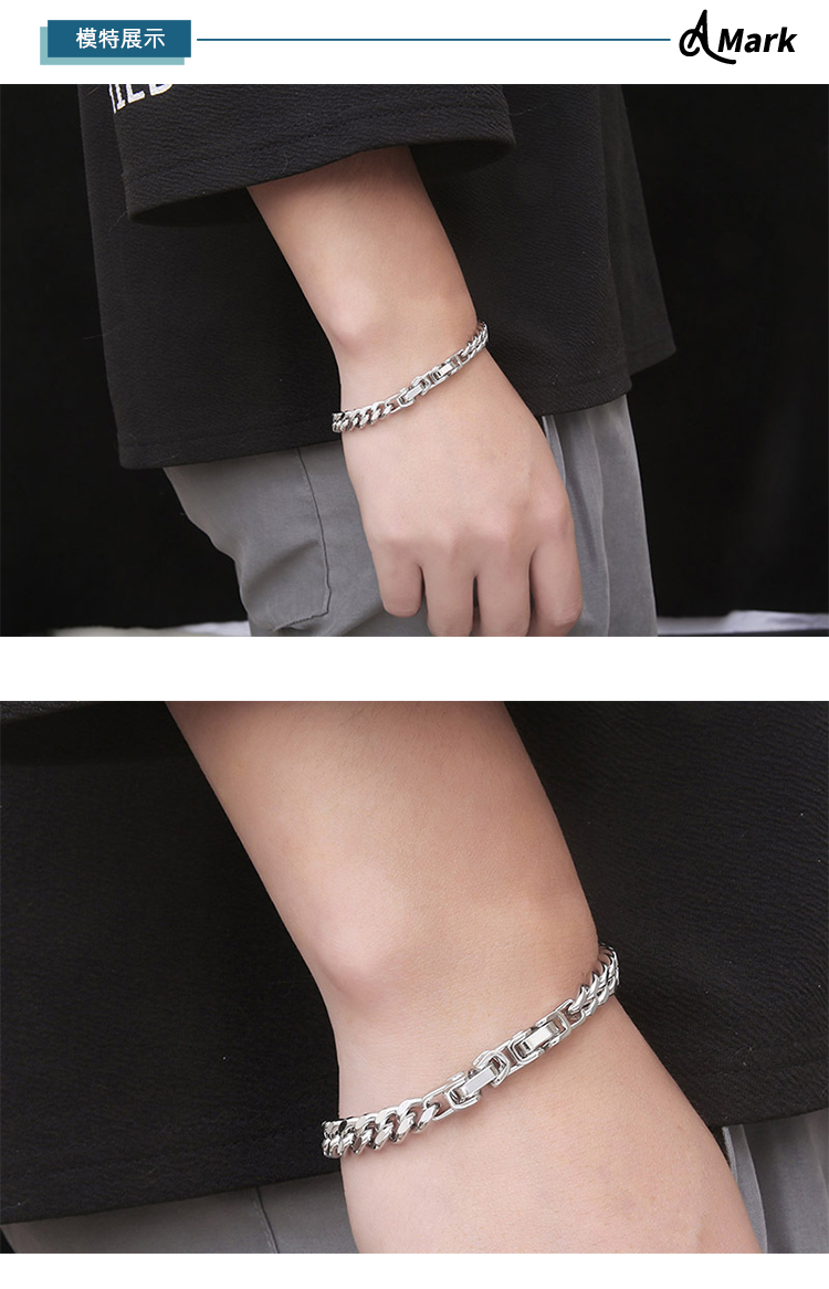【A MARK】鈦鋼手鍊/個性龐克嘻哈拼接316L鈦鋼手鍊(B款 鍊長19CM)
