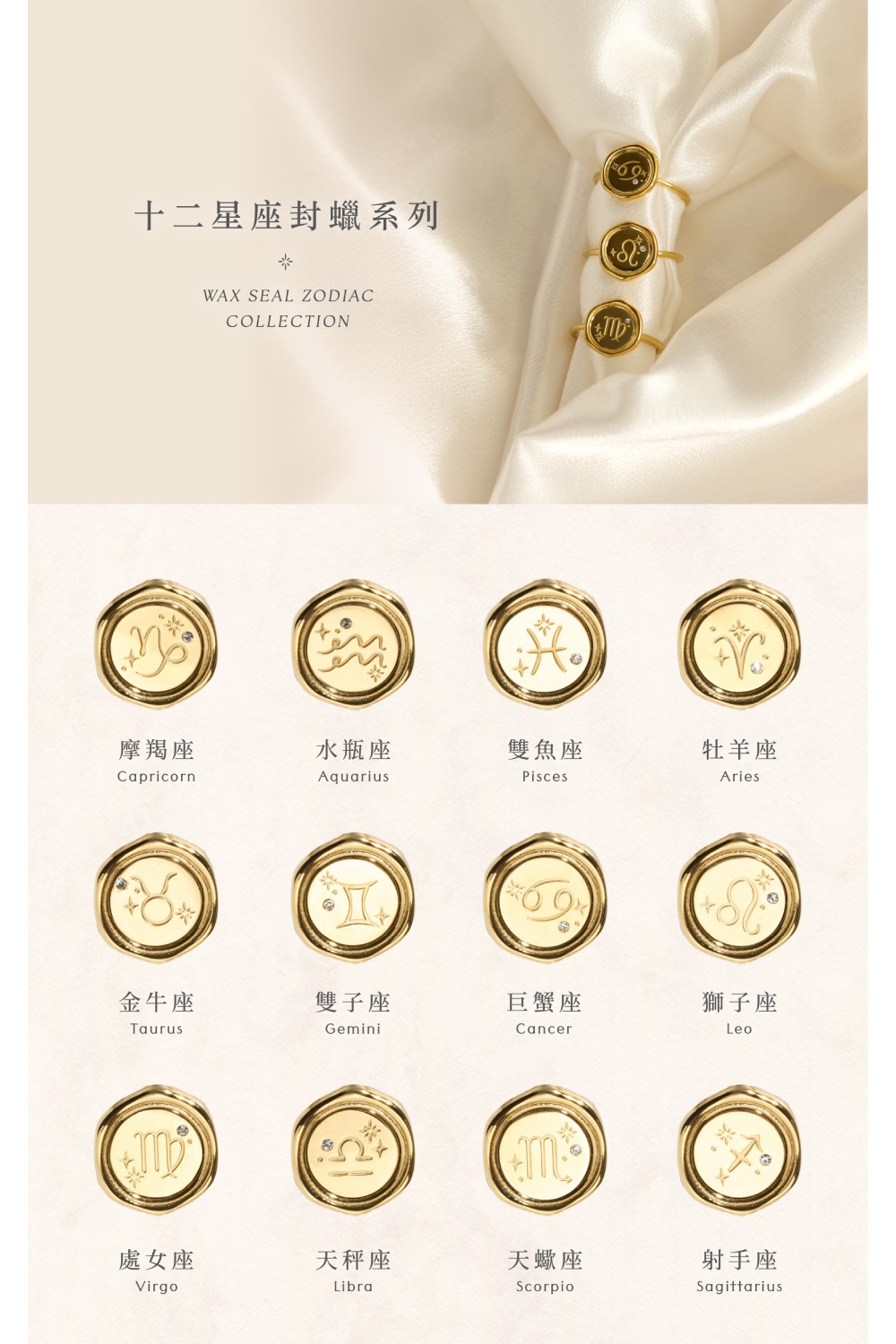 商品描述:「 十二星座封蠟純鋼戒指」 (共12款)