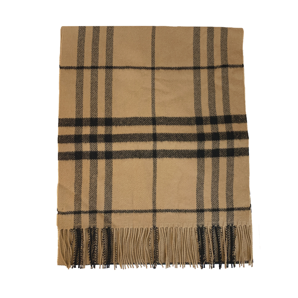 【BURBERRY 巴寶莉】經典格紋100%純羊毛長圍巾 咖色(80899501)