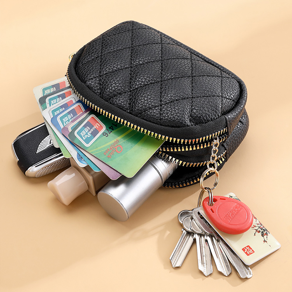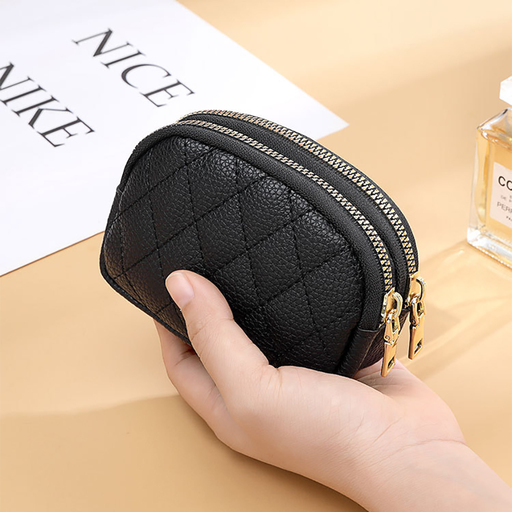 【樂適多】仿皮菱格雙層零錢包 MO8804(零錢包 隨手包 化妝包 拉鍊零錢包)