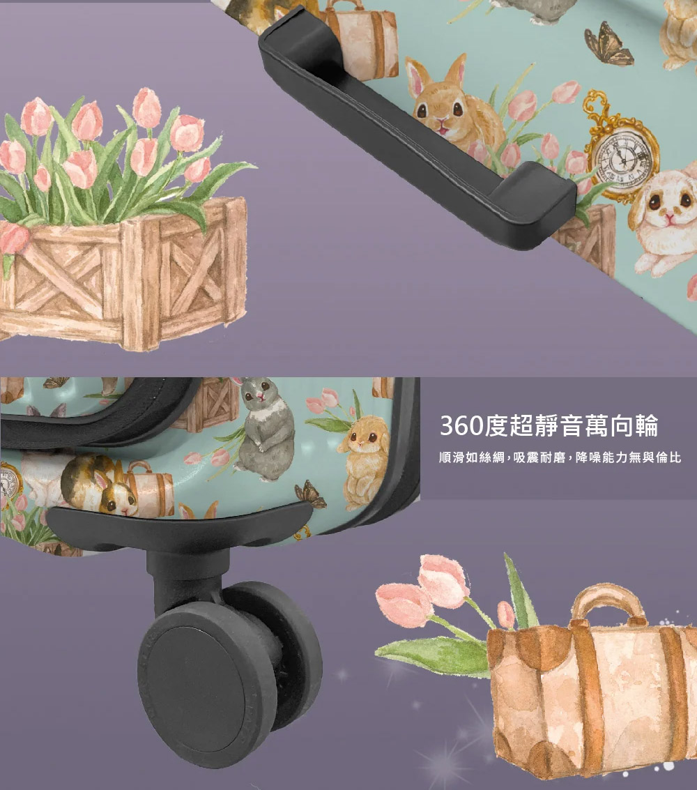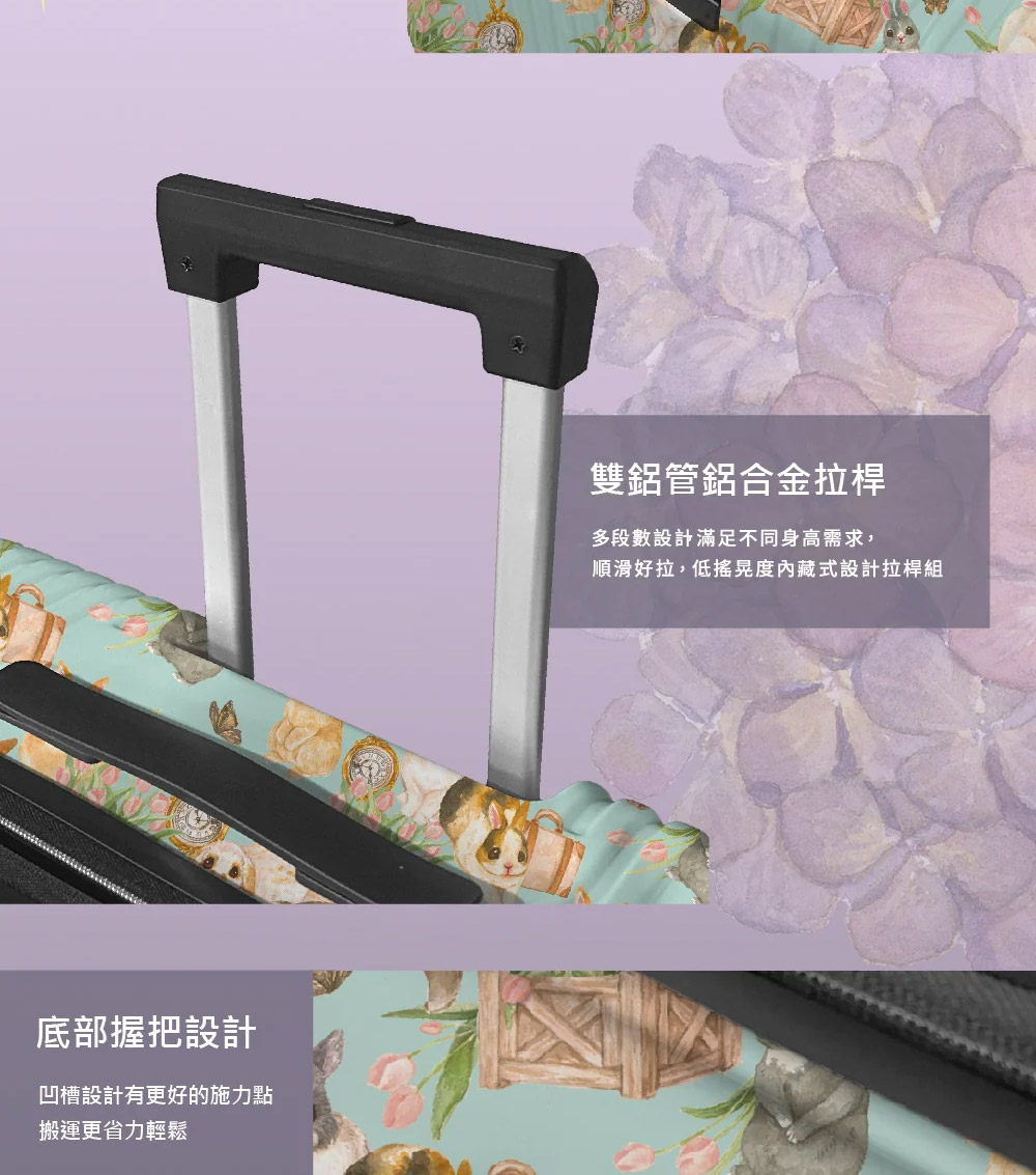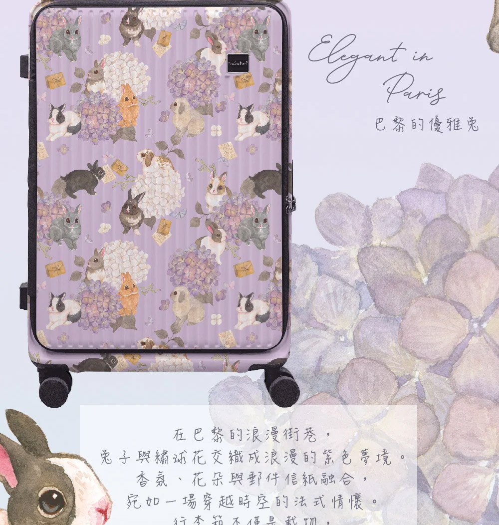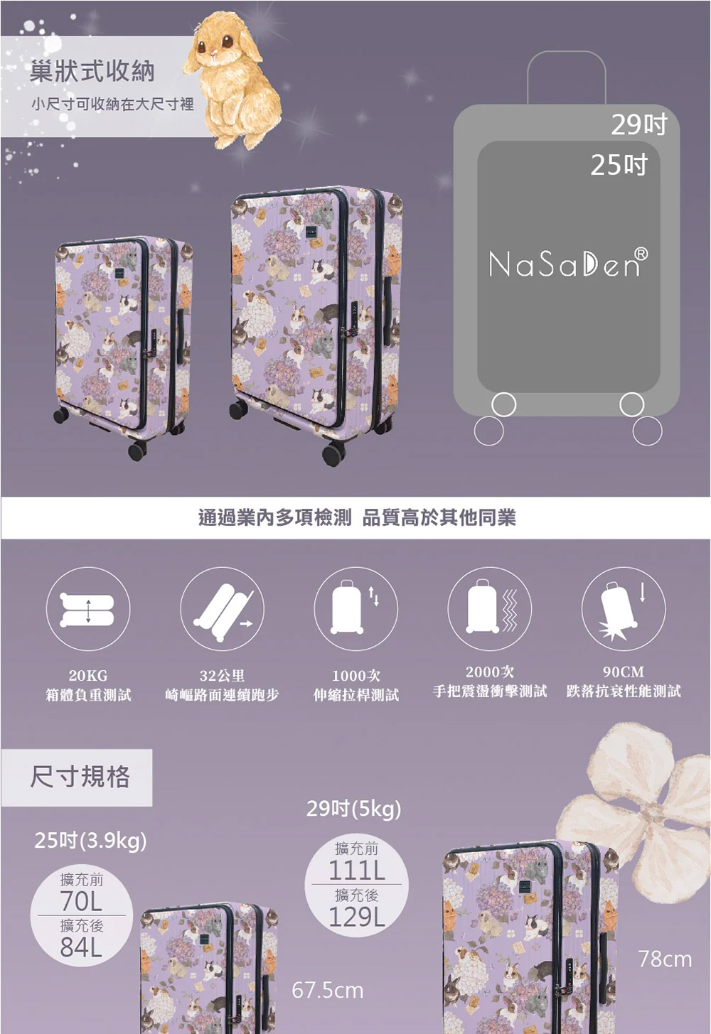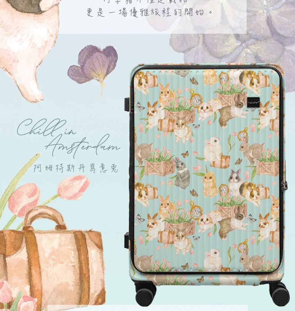 【NaSaDen 納莎登】25吋 萊茵系列 前開行李箱 英格藍貓聯名款 巴黎的優雅兔/綠兔(可擴充 上掀式行李箱)