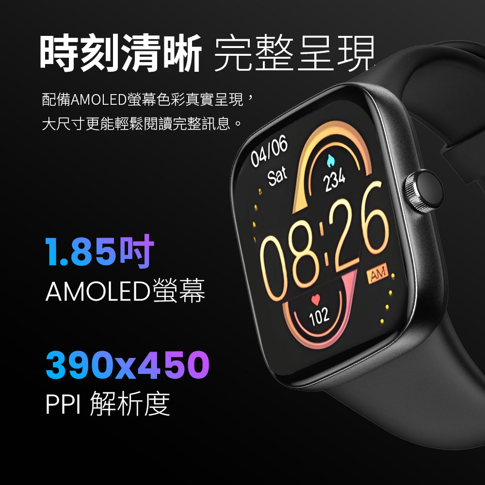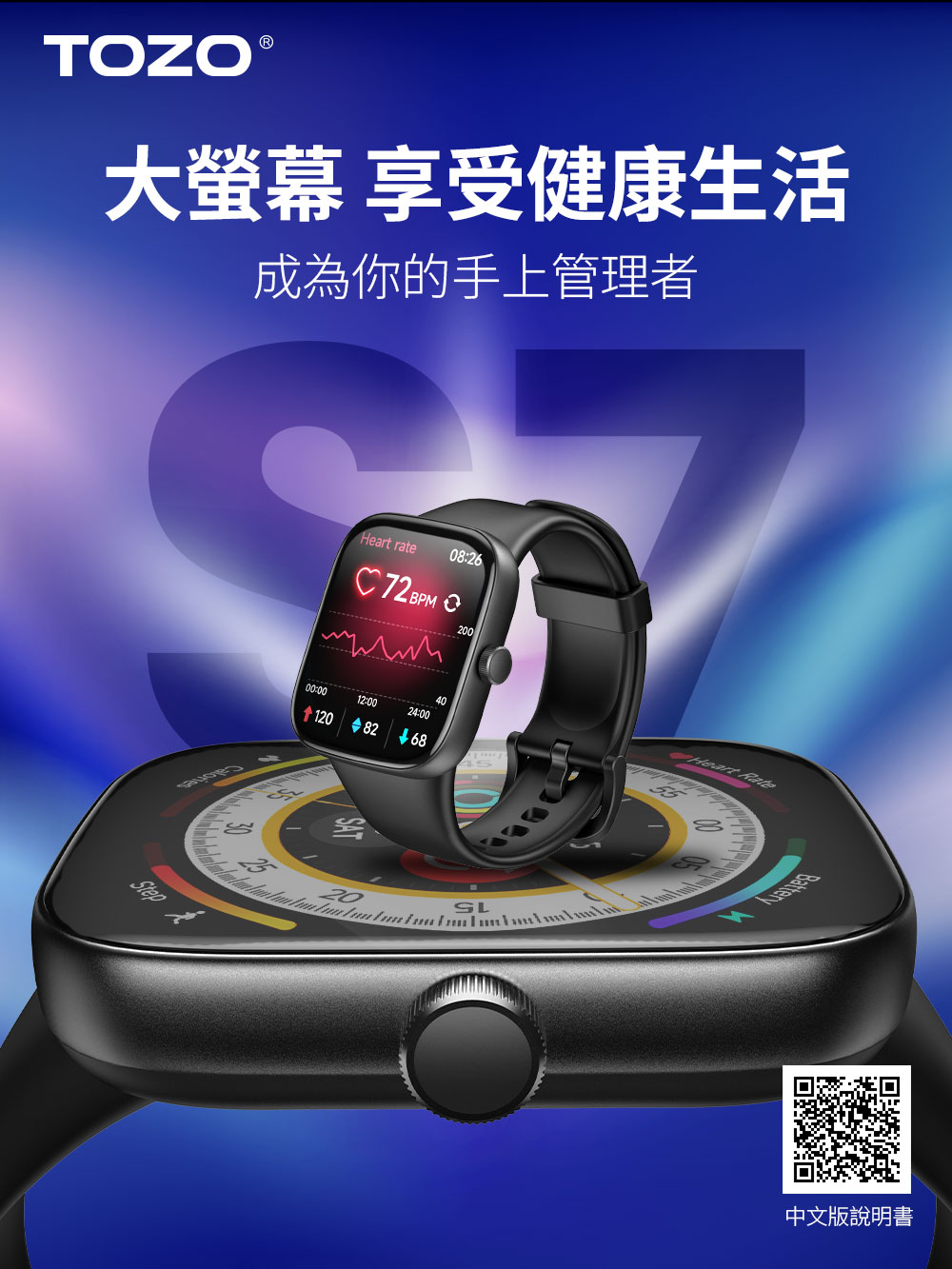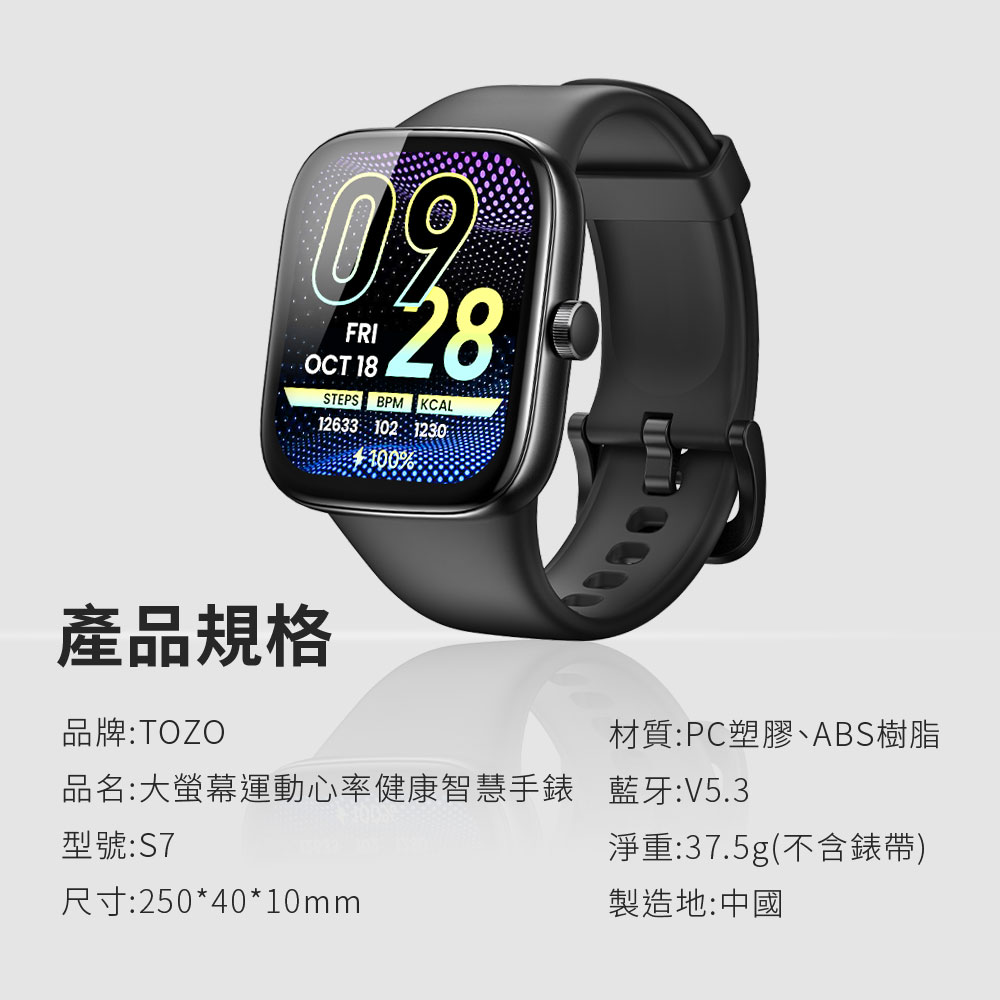 【TOZO】S7大螢幕運動心率健康智慧手錶(1.85吋/AMOLED螢幕/心率血氧健康監測/原廠公司貨)