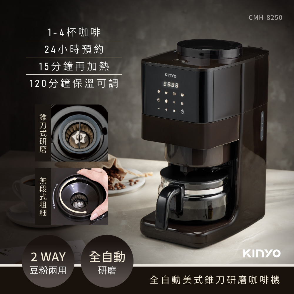 【KINYO】全自動美式錐刀研磨咖啡機(CMH8250)