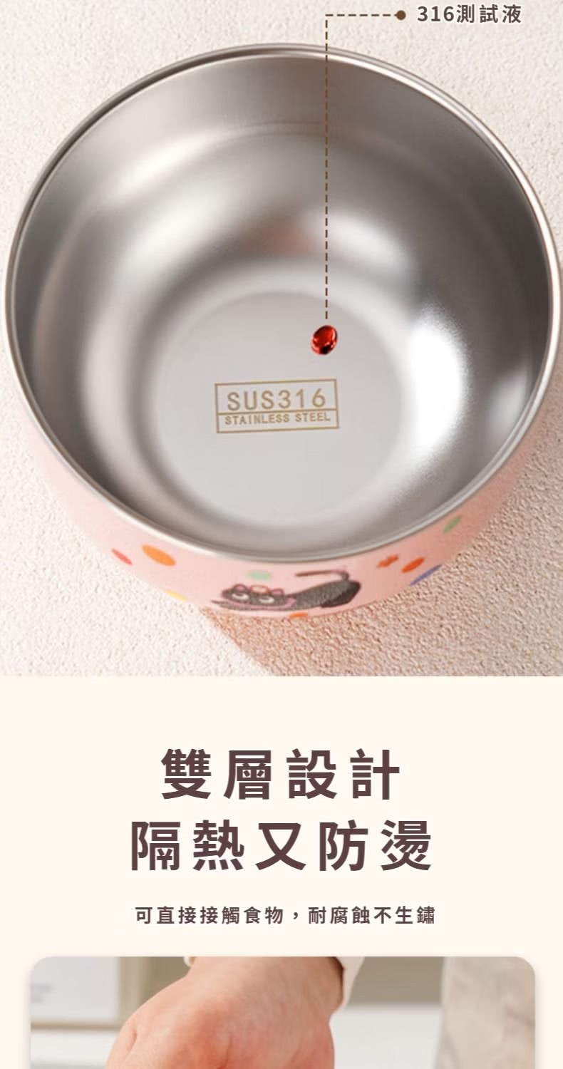 【吃吃飯】316不鏽鋼粉色兒童碗(雙層隔熱 真空保溫 防摔 加厚 防燙碗 露營 環保餐具 便當盒 飯碗 泡麵碗)