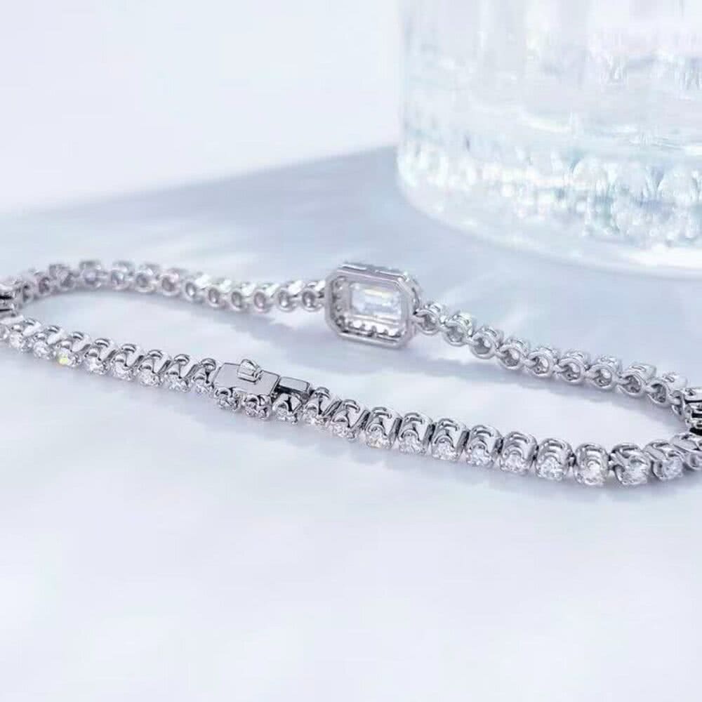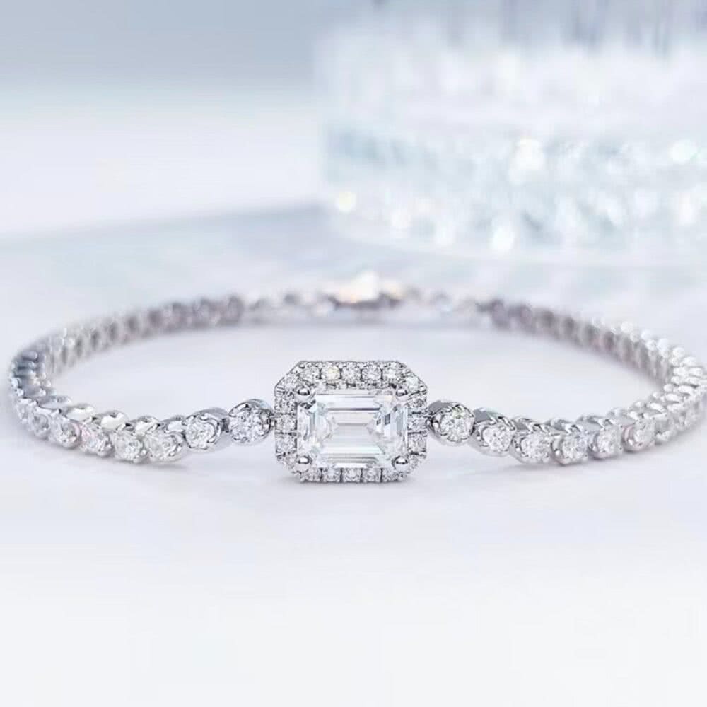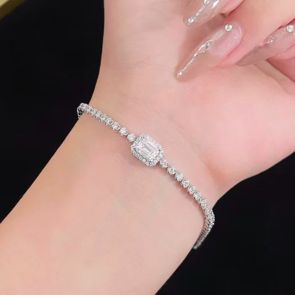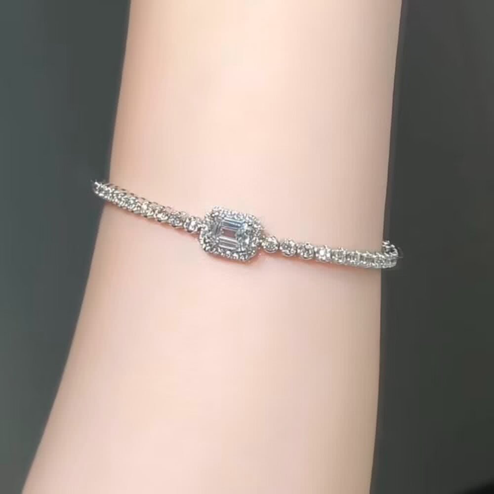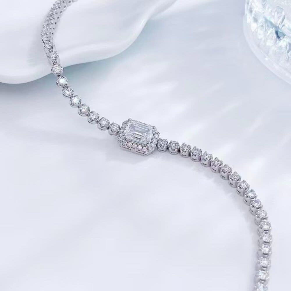 【鉅曜】PT950 1克拉 IGI 豪華時尚排鑲滿鑽祖母綠車工鑽石手鏈 培育鑽石(培育鑽石 鉑金 鑽石手鍊 鑽石)