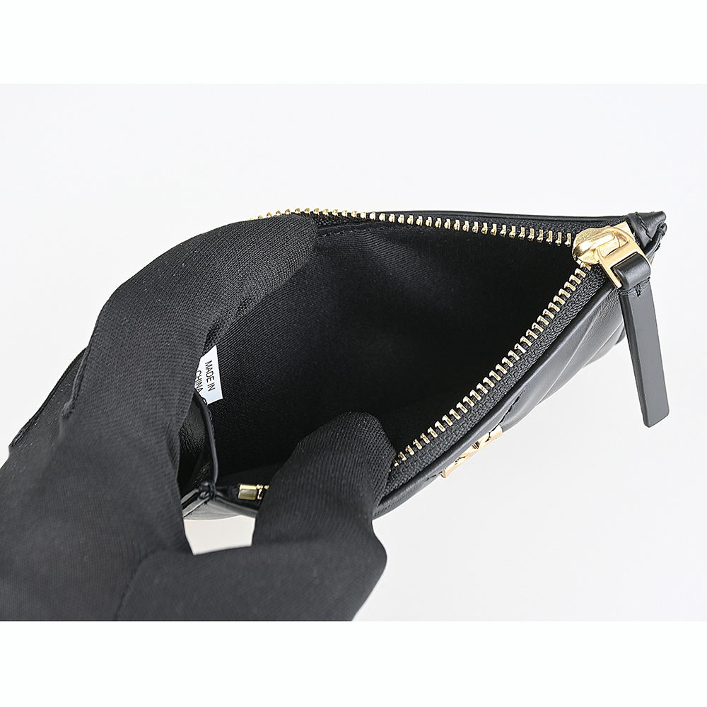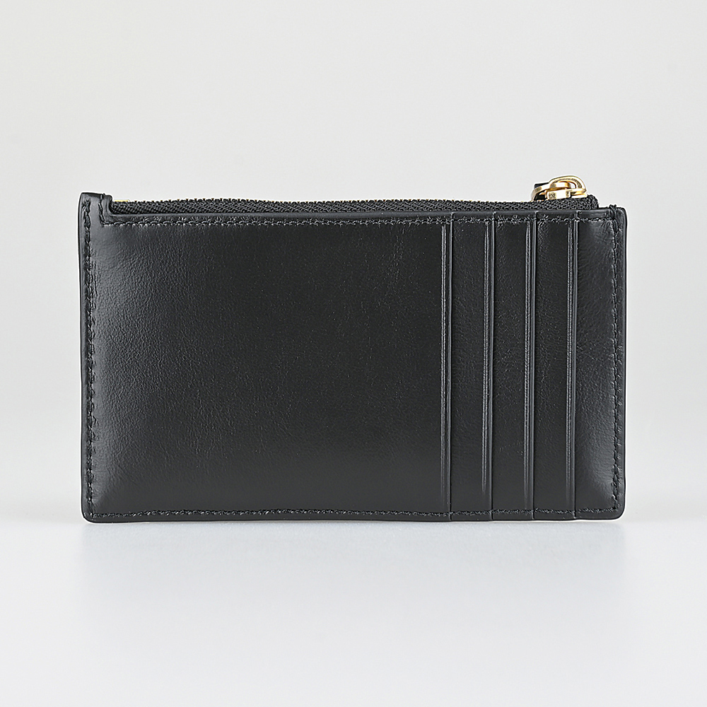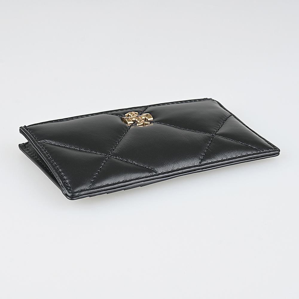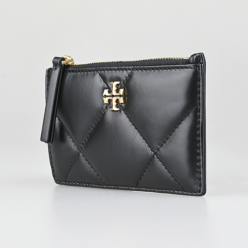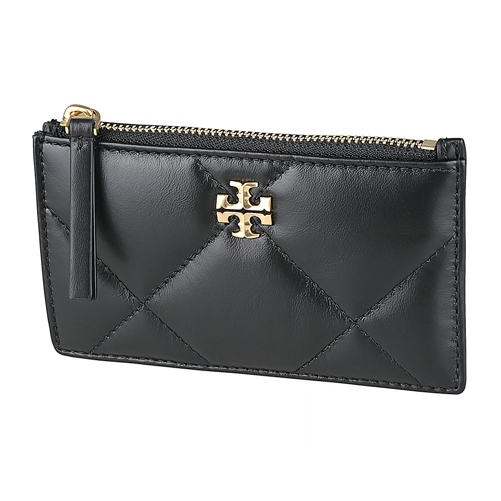 【TORY BURCH】TORY BURCH Kira立體古金字LOGO小牛皮菱格紋4卡拉鍊卡夾零錢包(黑)