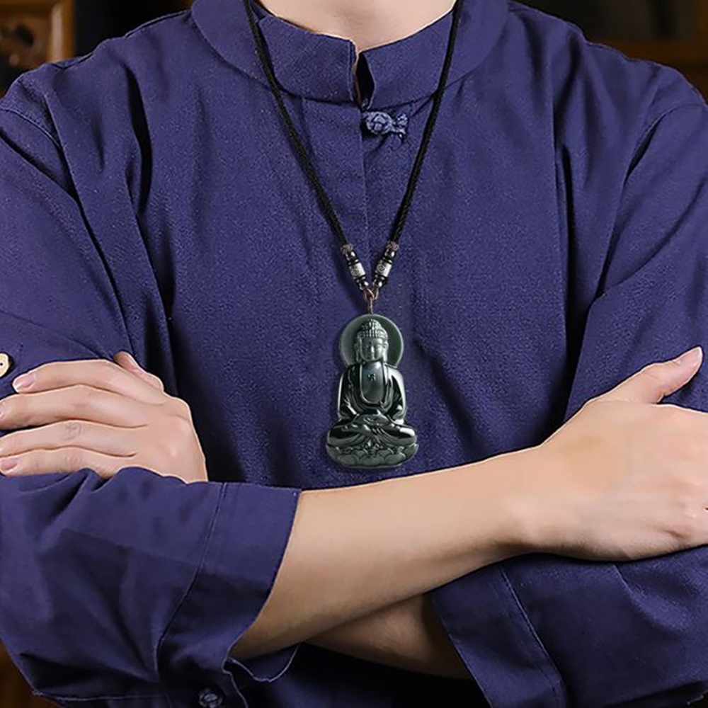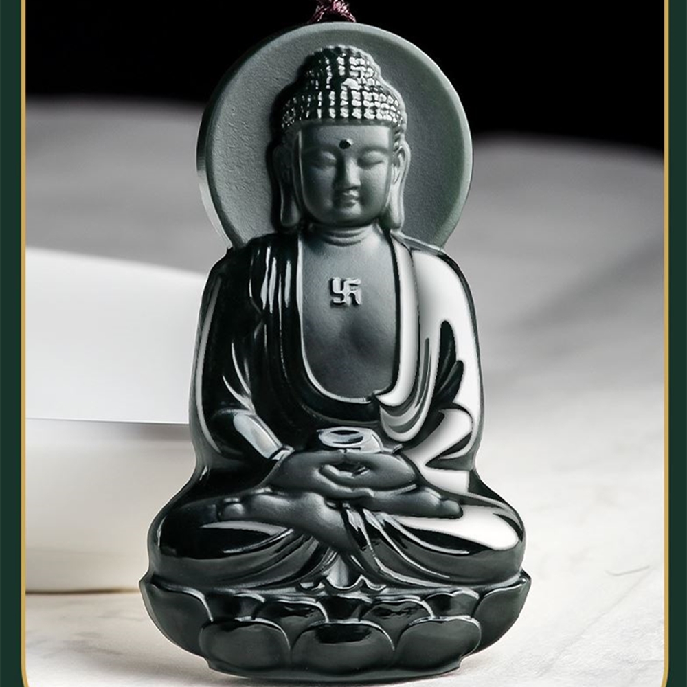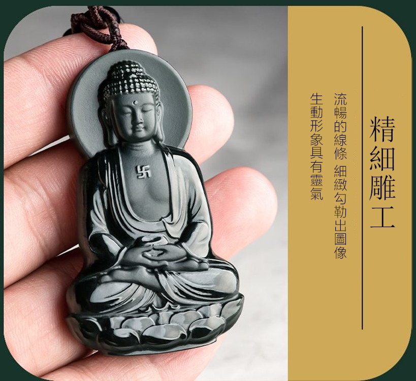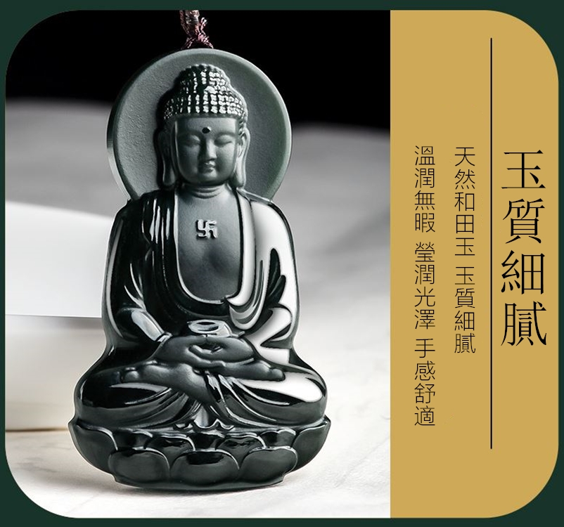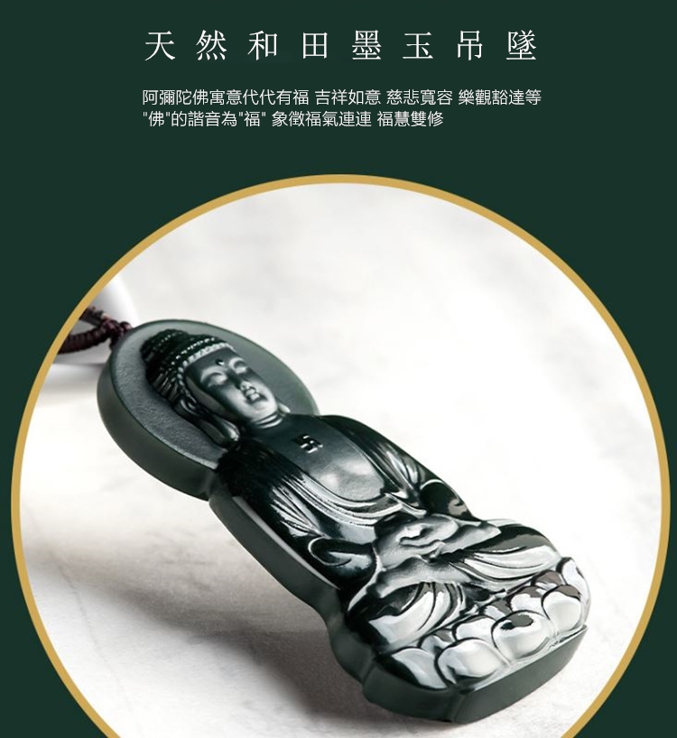 【Penny珮妮】老料和田玉墨玉 阿彌陀佛 吊墜項鍊(母親節 父親節 交換禮物 生日 情人節 尾牙 新年 結婚)