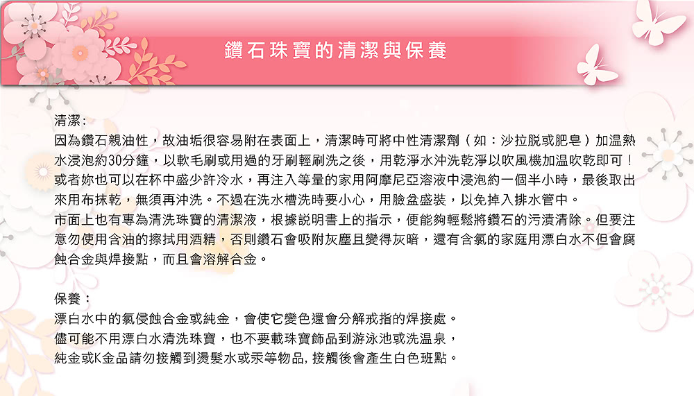 ■保固範圍:1.可免費改圍乙次 2.一年內發生配鑽掉落情形,免費維修(不包含主石)