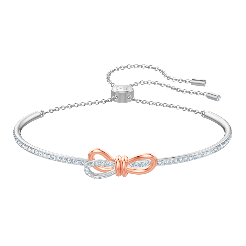 Lifelong Bow系列以蝴蝶結作為愛情的象徵,饒富玩味的設計,用來作為情人節禮物就最適合不過。而這款精緻浪漫,又充滿青春氣息的手鐲,以俐落線條及立體造型,搭配玫瑰金色和白金色鍍層,展現典雅華麗的魅力,是送禮或自用的首選。