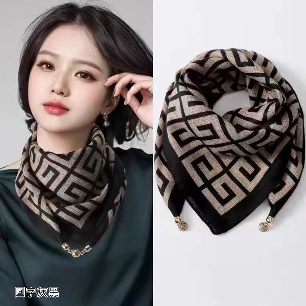 一條絲巾,讓你在秋冬隨心變換造型,真正做到 「一巾多用 × 氣質加倍」。這款 磁扣絲巾 專為現代女性設計,將傳統絲巾升級為「免打結版本」。內藏磁扣設計,僅需輕輕一吸即可固定,不但省時省力,還能避免打結後的皺褶與鬆脫問題。絲巾本身採用輕盈透氣棉布材質,柔順貼膚,搭配金屬磁扣點綴,質感瞬間升級。不論是 通勤OL、咖啡廳約會、旅行街拍,都能輕鬆駕馭,讓你一秒完成高級氛圍穿搭。